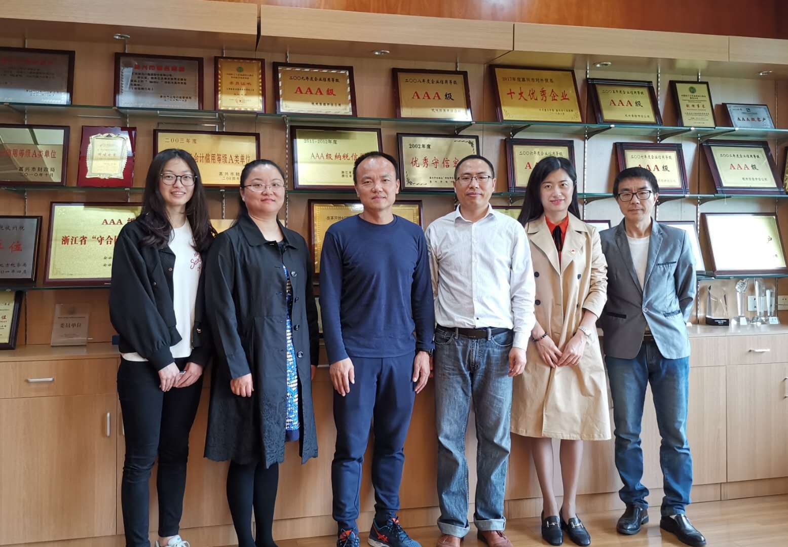 4月23日私房tv 副院长喻锋平、党委副书记周钰和日语系副主任孙玉慧一行三人到浙江汇信进出口集团股份有限公司、海宁欧兰纺织有限公司、海宁原动力教育和浙江德俊新材料有限公司看望私房tv 2019届英语系、日语系毕业实习生,并与企业领导进行了洽谈交流。