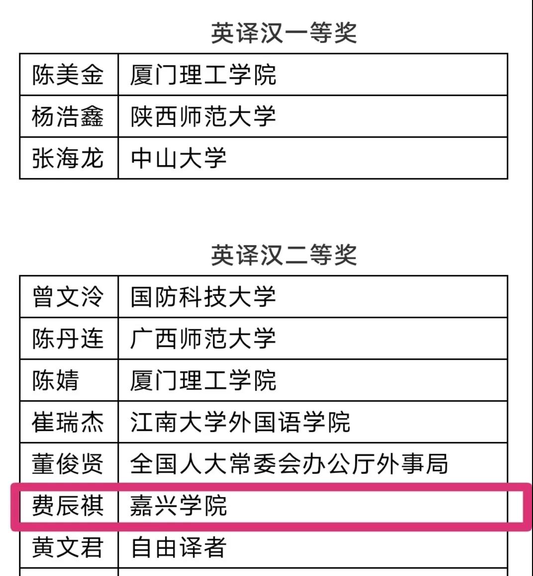 英语专业191班费辰祺喜获英译汉组全国二等奖,这是私房tv