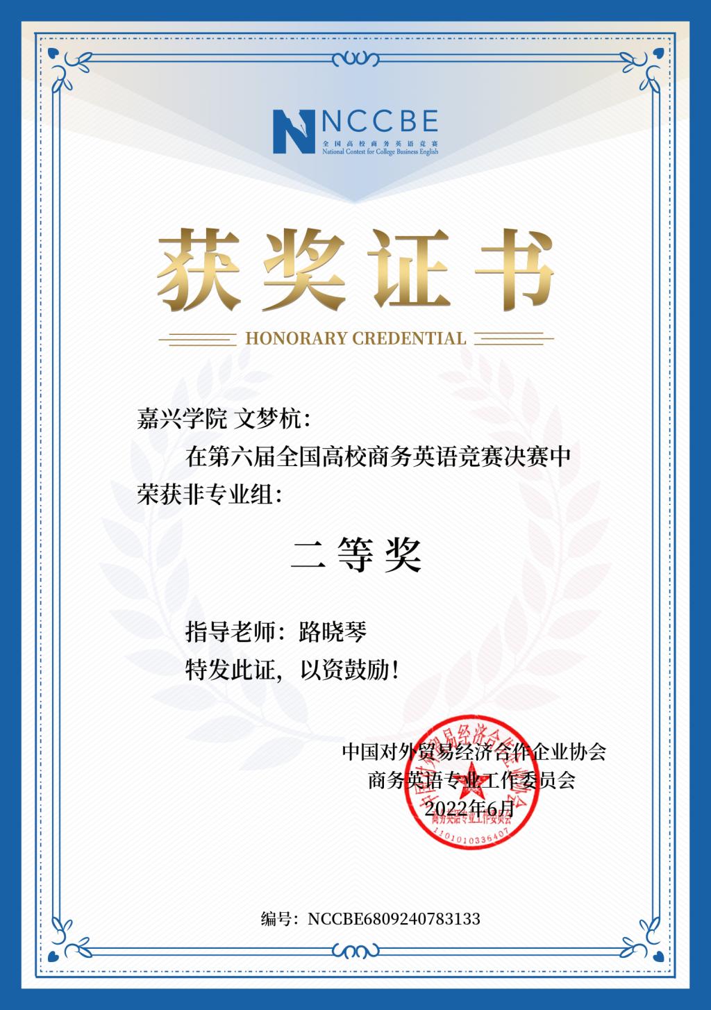 近日,由全国商务英语专业考试管理中心、中国对外贸易经济合作企业协会商务英语专业工作委员会联合主办,我院承办的第六届全国高校商务英语竞赛落下帷幕。本次竞赛在大外部教师的积极推动下,共有来自各学院的226名同学参加初赛,最终有143人获奖并入围决赛,占私房tv 参赛人数的63%。在最终的决赛中,私房tv 共有12名非英语专业的学生获奖,其中一等奖1名、二等奖2名、三等奖9名。私房tv 作为赛点获评竞赛最佳组织奖,大外部杨桂华、路晓琴、钱征宇、周红、章剑飞5位教师获评竞赛的优秀指导教师。