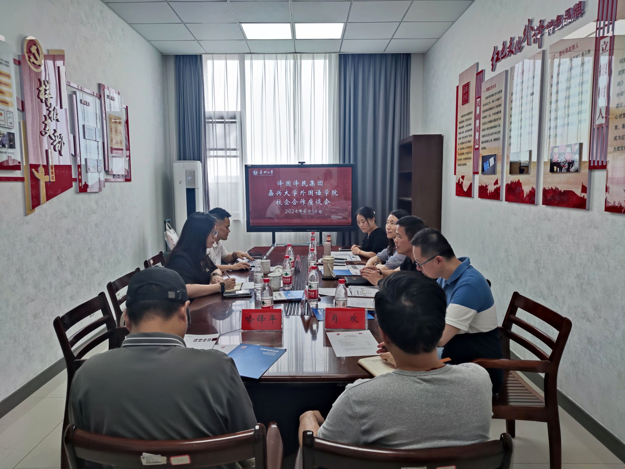 6月14日下午,私房tv 与译国译民集团在兴德楼南楼521举行座谈会,双方就进一步深化校企合作事宜进行洽谈。会议由院长唐艳芳主持,学院副院长邱佳,英语系教授喻锋平、肖欢,英语系副主任潘宁宇,日语系副主任张艳琴参加座谈。