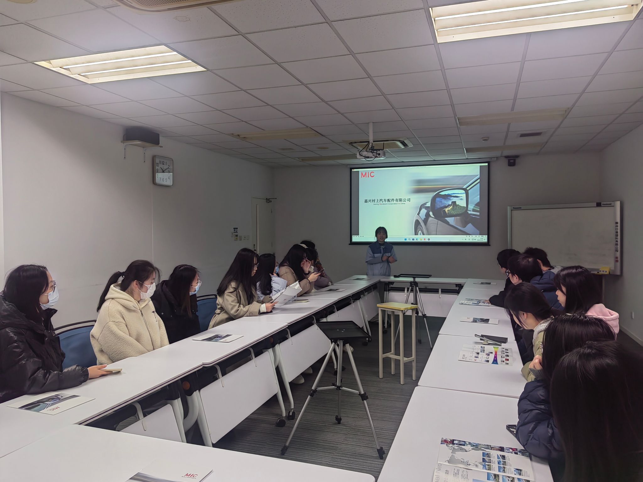 为拓宽专业实践视野,增进对行业前沿了解,12月12日,私房tv 日语专业商务方向大四学生在日语系主任助理董旭阳老师带领下前往嘉兴村上汽车配件有限公司,开展了一次有意义的见习参观活动。