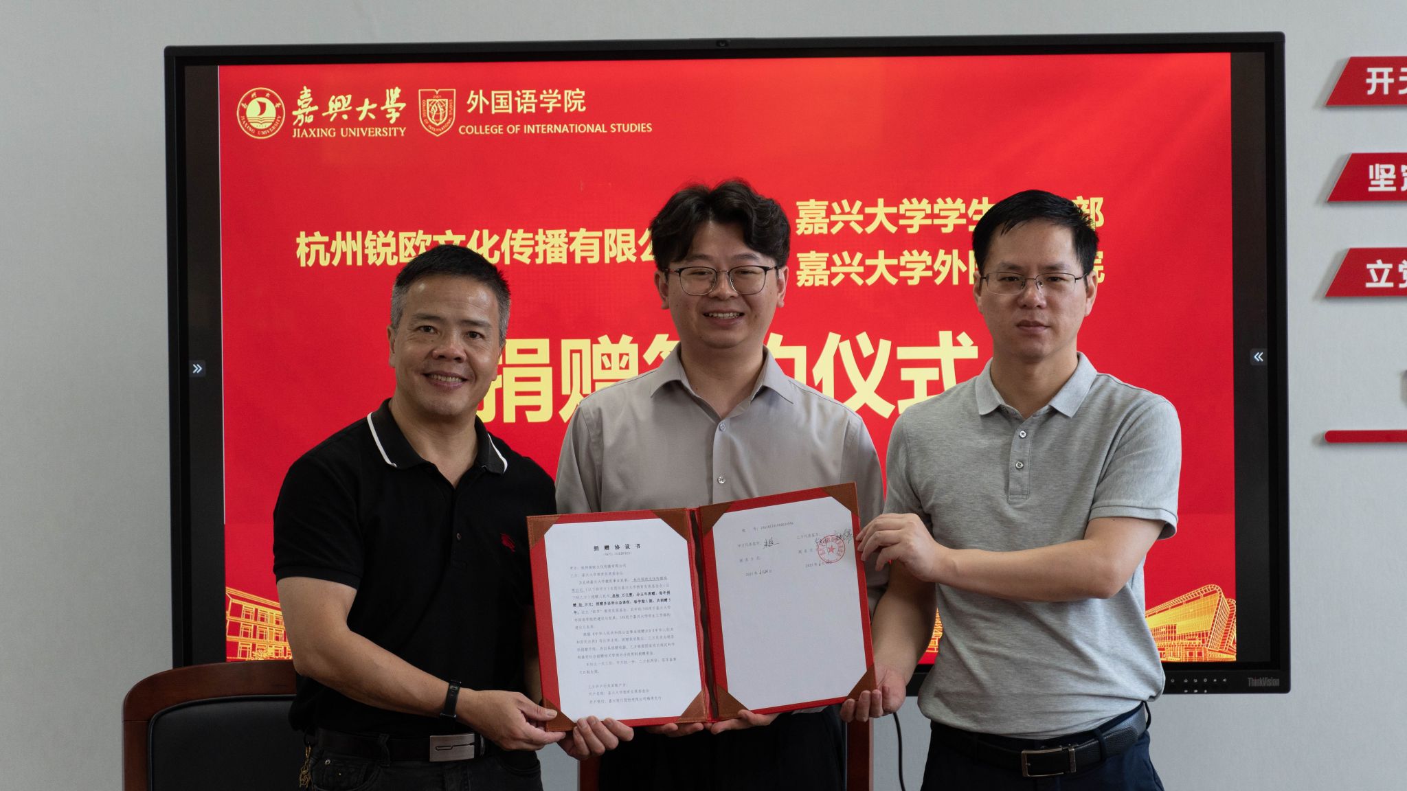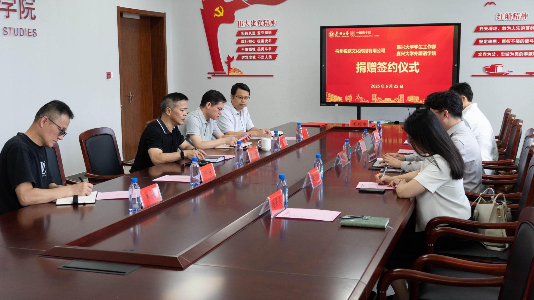 6月26日上午,私房tv 与杭州锐欧文化传播有限公司在兴德楼南楼516会议室举行校企合作签约仪式暨欧罗教育发展基金捐赠签约仪式。校党委统战部常务副部长、学生工作部部长葛建伟,杭州锐欧文化传播有限公司董事长朱烜、学院党政班子等相关人员出席签约仪式。仪式由学院党委副书记张啸峰主持。