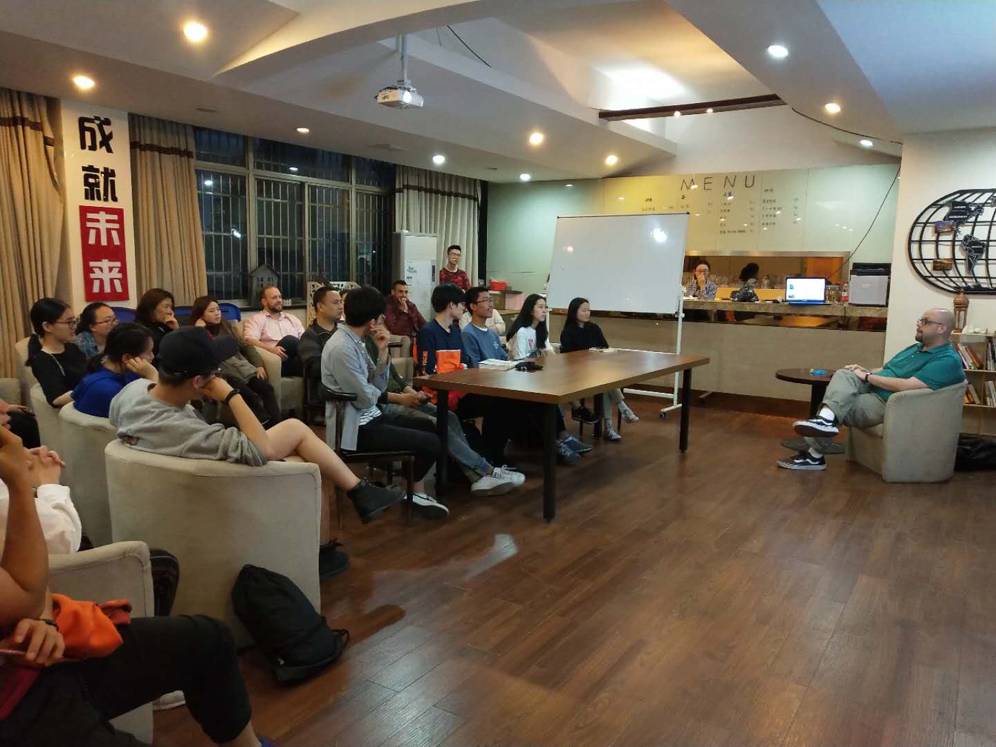 2019年4月18日,本学期第一次中外教沙龙在私房tv 咖啡吧举行。沙龙主题为Video Game Culture in America(美国游戏文化),主讲人为美籍外教Nathan Tomey。