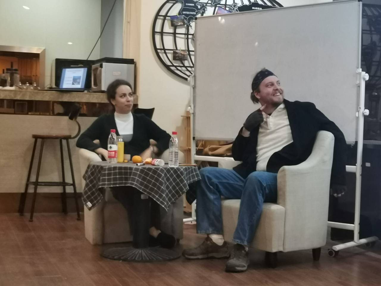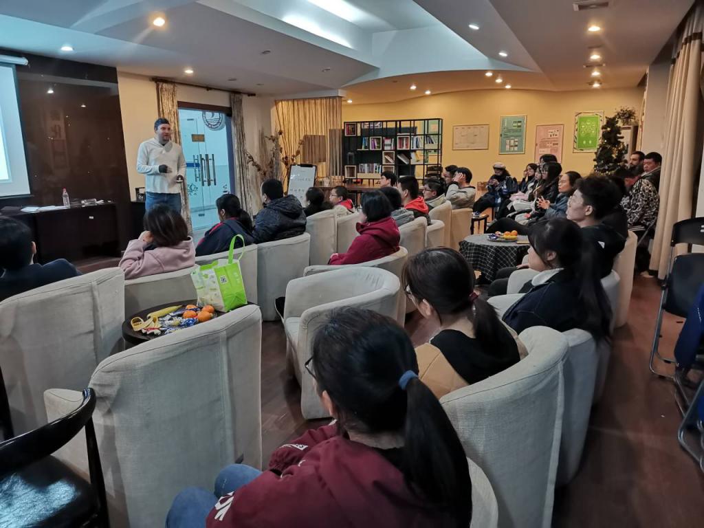 2019年11月28号星期四晚18:30,由私房tv 学习部主办的外教沙龙活动在咖啡吧如期举行。本次外教沙龙的主讲人是Kseniia和Daniel两位老师。大家在本次活动中互动交流,锻炼英语口语,学习西方文化风俗知识。
