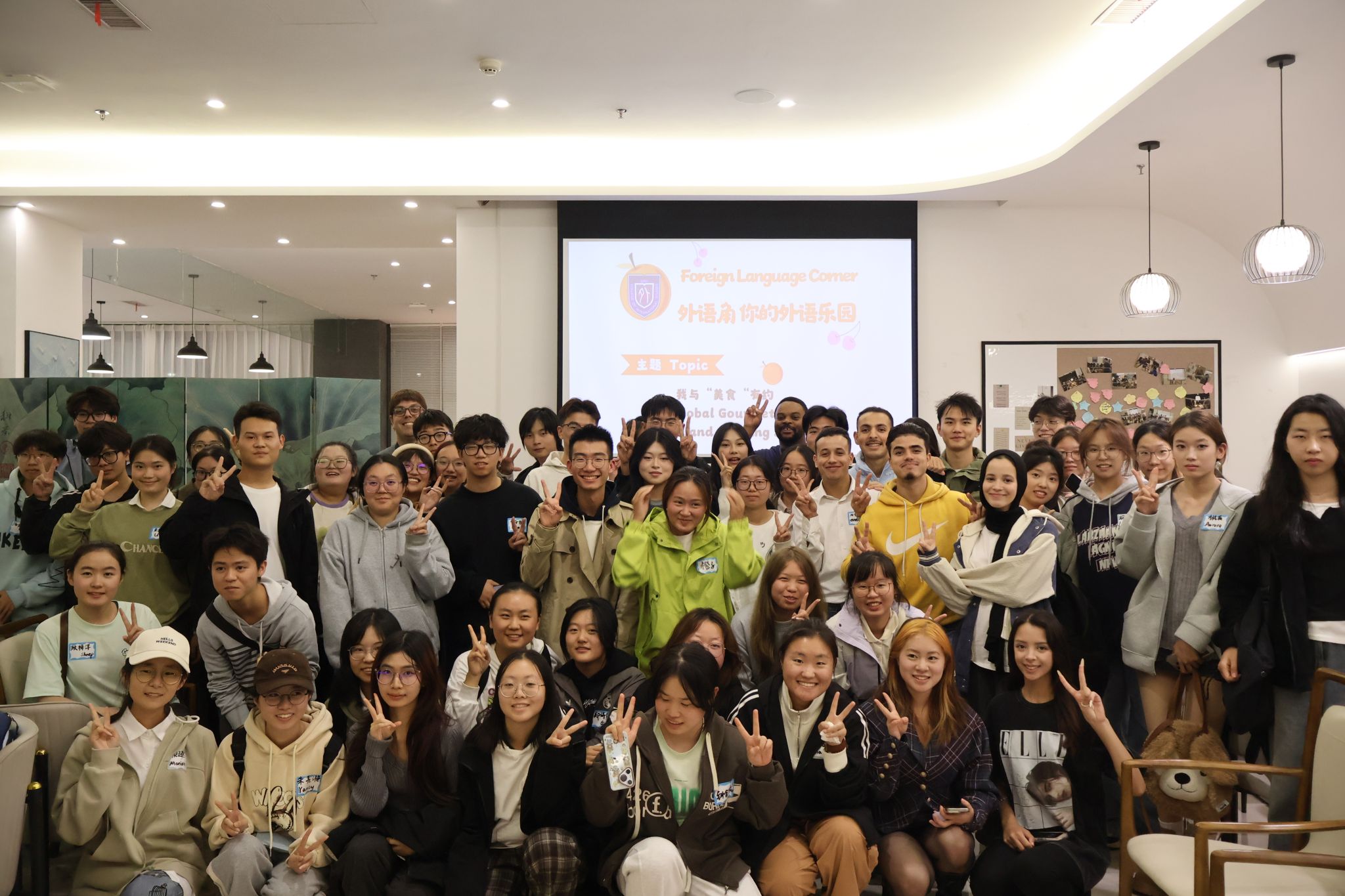 10月24日晚,私房tv 在尚书吧顺利举办了本学期第三期外语角活动。本次活动以“Global Gourmet:Language and Cooking”为主题,探讨了德国、美国、南非等国美食及其背后的文化底蕴,旨在为同学们构建一个既富知识性又具趣味性的交流平台,在潜移默化中提升学生的跨文化知识储备和口语交际能力。