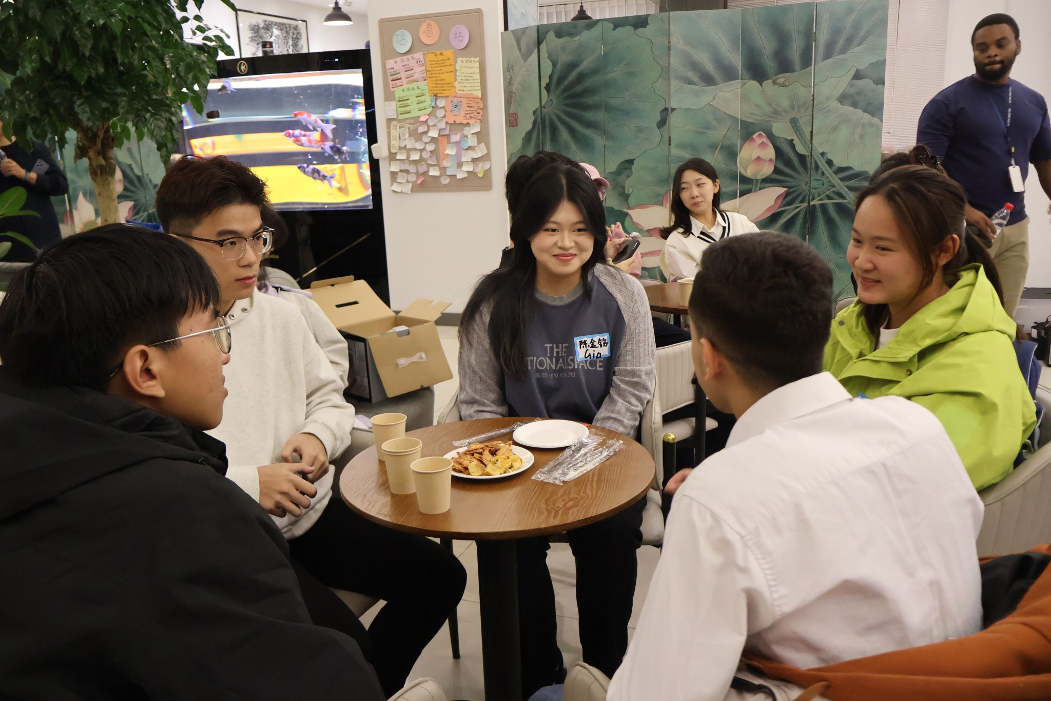 随后,外教Nathan老师介绍了西方万圣节期间家庭糖果的制作,并与大家分享了他的巧克力花生酥,还慷慨地附赠了他们家的“祖传秘方”。一时间,“小吃货”们在美食的驱使下,纷纷跃跃欲试,想要上前介绍自己的家乡美食。在交流环节,外教Kay老师组织同学们进行小组讨论,他通过猜词游戏,引发了大家对美食与地域文化的思考。同学们纷纷表示,这次外语角不仅学到了新的英语词汇、提升了英语交流与运用能力,还增进了彼此的友谊,也进一步增强了他们对英语学习的兴趣与信心,丰富了大家的校园生活。