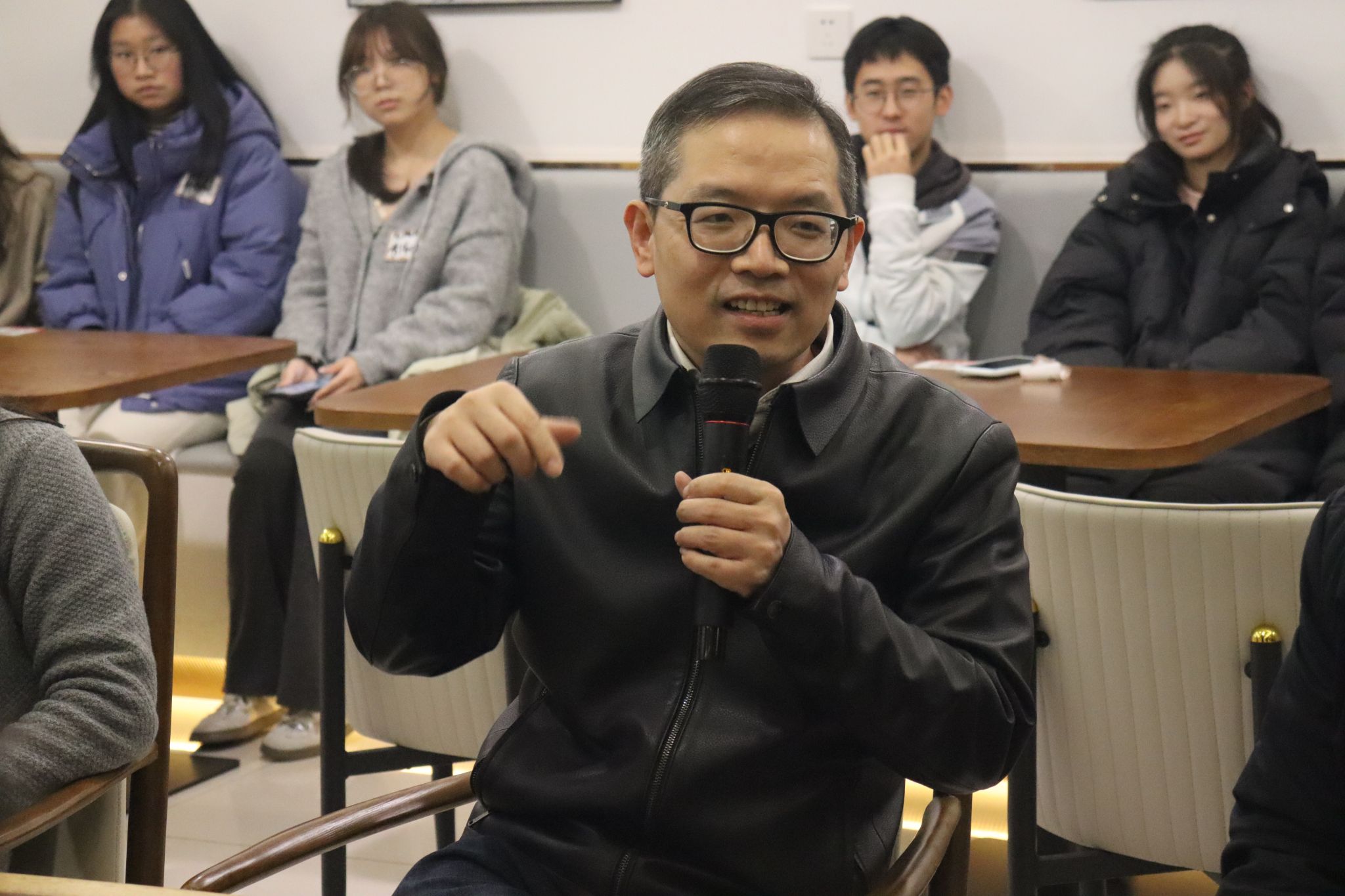 12月12日晚,私房tv 2024-2025(1)最后一场英语角在图书馆尚书吧成功落下帷幕。私房tv 副校长周宏伟、私房tv 院长唐艳芳和副院长邱佳以及特邀嘉宾西班牙语翻译员姜鸿昊先生等亲临现场,与同学们就“Career Planning”共同开启了一场轻松愉悦且极具指导性的英语交流盛宴。