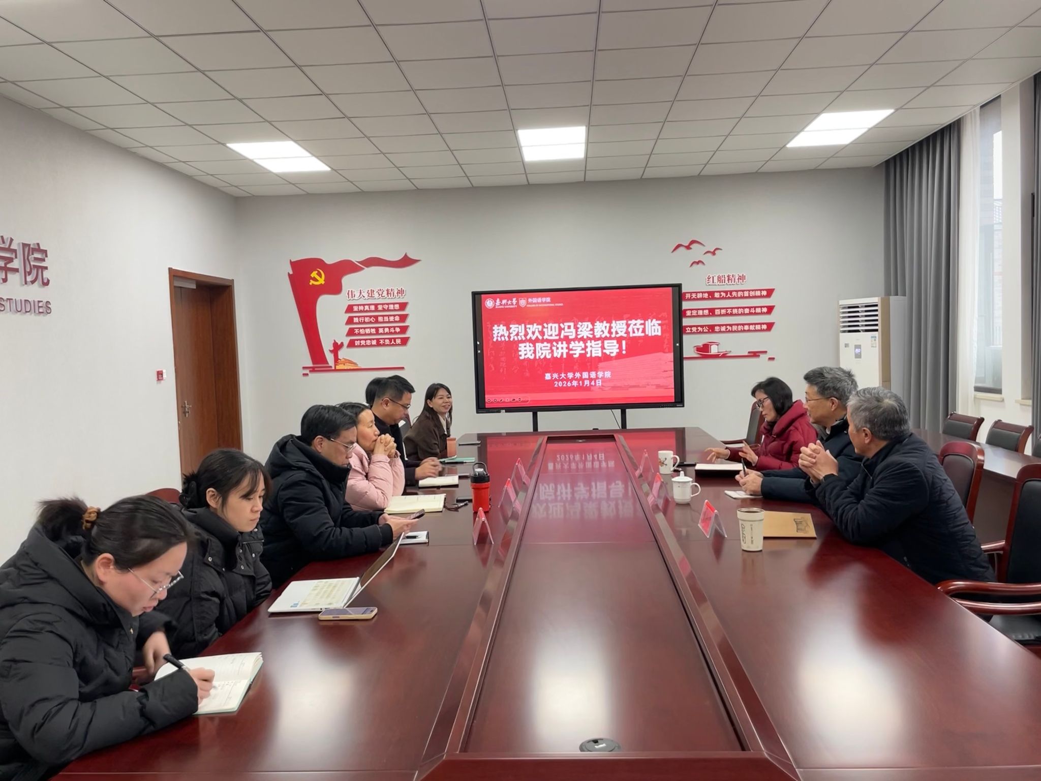 1月4日下午,南京大学中国南海研究协同创新中心副主任、博士生导师冯梁教授应邀来私房tv 讲学指导。学院党政班子成员、各系部主任和教师代表等参加会议。会议由学院院长、嘉兴安澜研究中心主任唐艳芳主持。