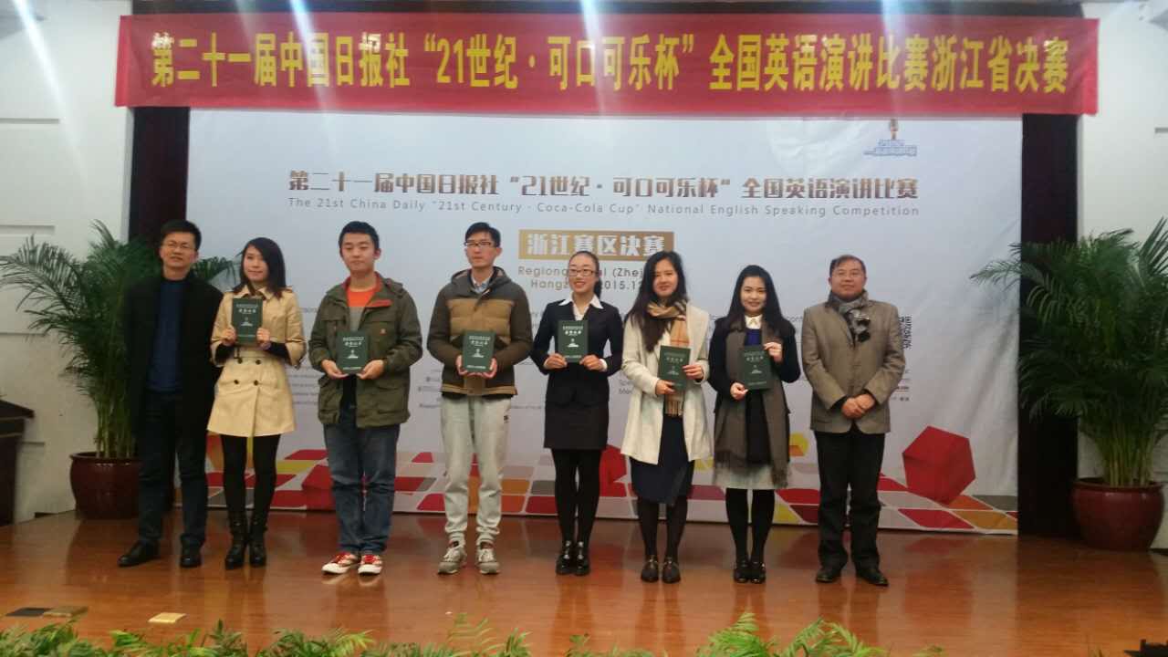 第21届中国日报社“21世纪·可口可乐杯”全国英语演讲比赛浙江赛区决赛由浙江大学城市学院主办,来自全省高校的36名选手参赛。此次大赛设冠、亚、季军各1名,获得晋级全国半决赛资格;另有一等奖6名,二等奖10名,三等奖17名。