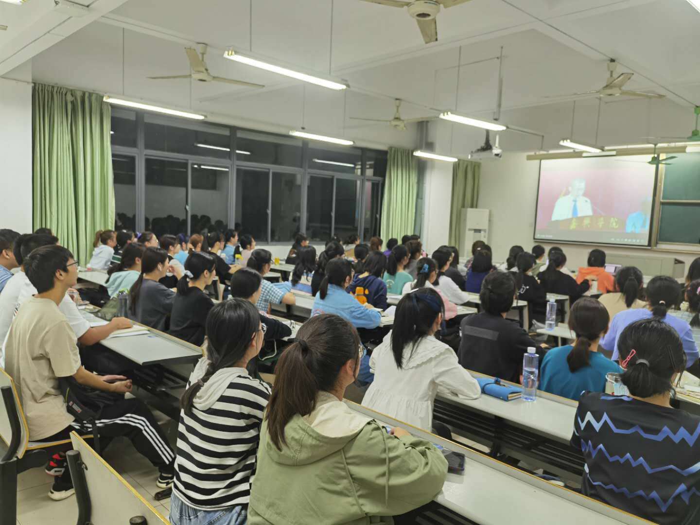 10月12日晚19时,嘉兴学院2020级新生典礼在嘉兴学院剧场举行,600多名师生齐聚一堂。鉴于疫情防控常态化的要求,除现场600名师生外,私房tv 新生于教二B306同步在线观看直播。现场庄严肃穆,学生们都聚精会神。