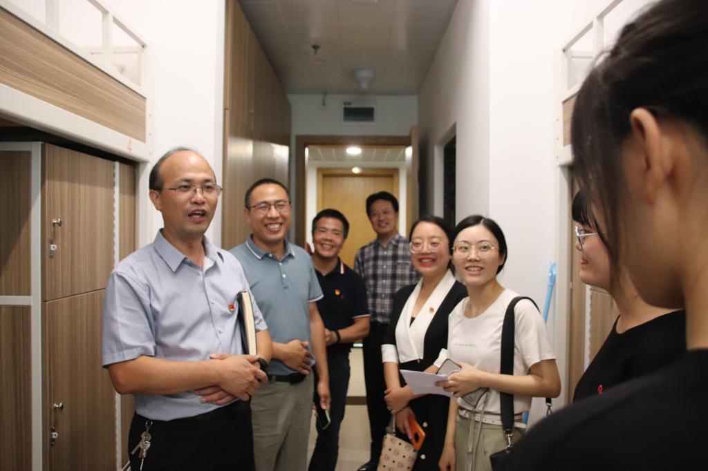 9月9日下午,校党委委员、副校长杨培强在私房tv 党政领导班子和学工办老师的陪同下走访了新生宿舍,为2021级新生送去温暖的问候与祝福。