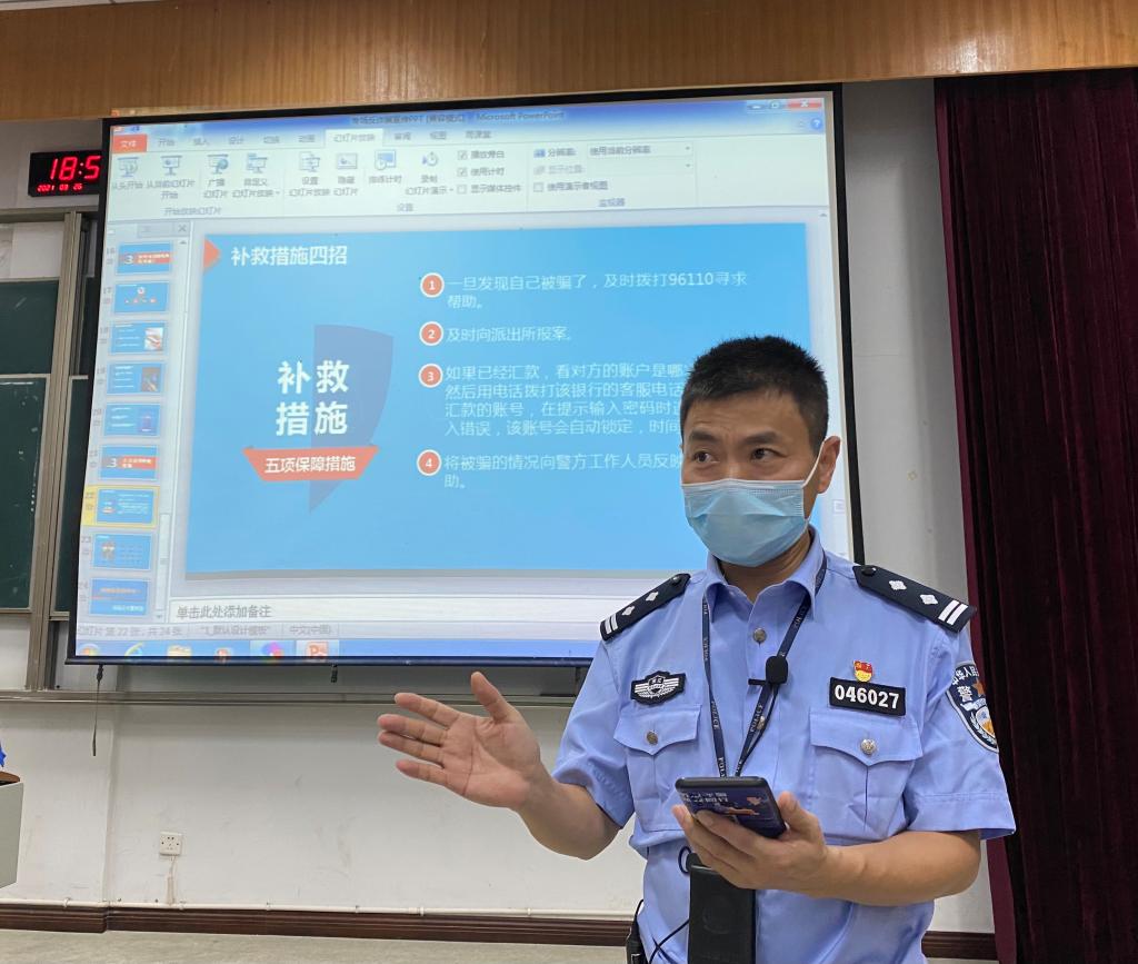 为增强我院新生的安全意识,提高新生的安全防范技能。9月26日晚,私房tv 邀请到城南派出所四级高级警长张秋江警官为2021级新生开展安全教育讲座,进行反诈宣传以及安全防范教育。