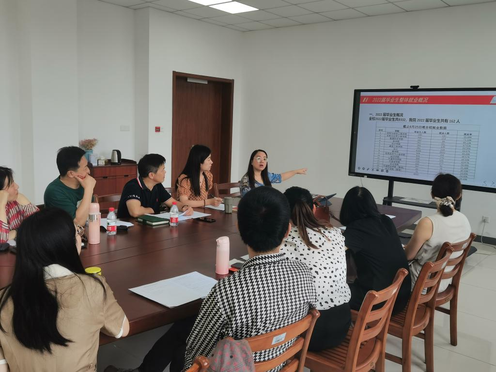 6月26日上午,私房tv 召开2022届毕业生就业工作专班会议。学院党政班子、系主任、辅导员、毕业班班主任参加会议,会议由党委副书记朱莹主持。