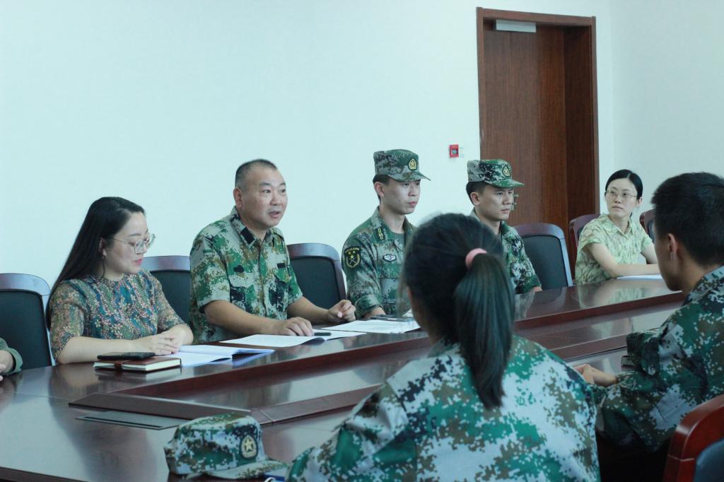 8月22日下午14:30,私房tv 2022级学生代表与军训教官见面会在兴德楼516召开。体军部指导员陈国祥,军训教官凌洁、朱涛,党委副书记朱莹以及学工办全体辅导员出席了本次见面会,会议由朱莹主持。