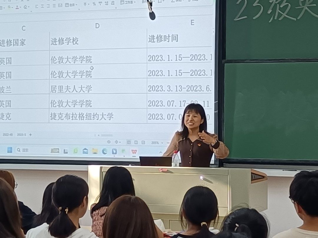 见面会中,陈丽老师为同学们介绍了近五年英语系学生海外带薪、参加夏令营、冬令营和海外在线课程的参与情况,分析了海外留学的利弊。她还以自己同学为例,分享了如何尽早从心态、财力、流程以及知识储备方面做好出国留学的准备。
