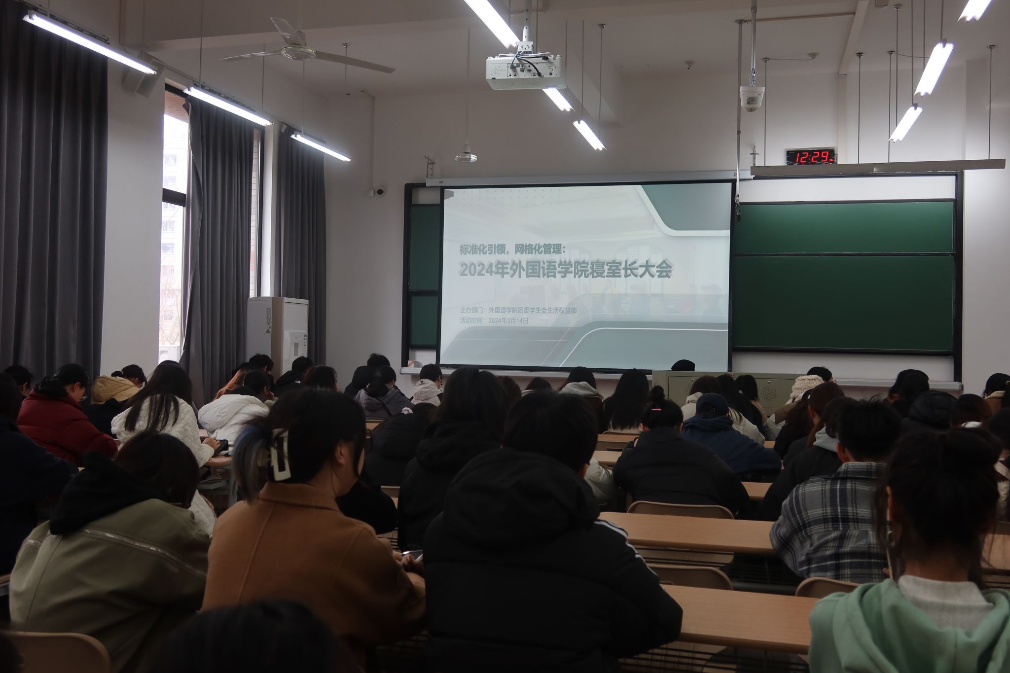 3月14日中午,私房tv 在兴德南楼126教室召开2024年私房tv 寝室长大会。本次会议旨在提升宿舍管理水平、增强学生自治能力,共同探讨宿舍文化建设、安全卫生管理等关键议题。