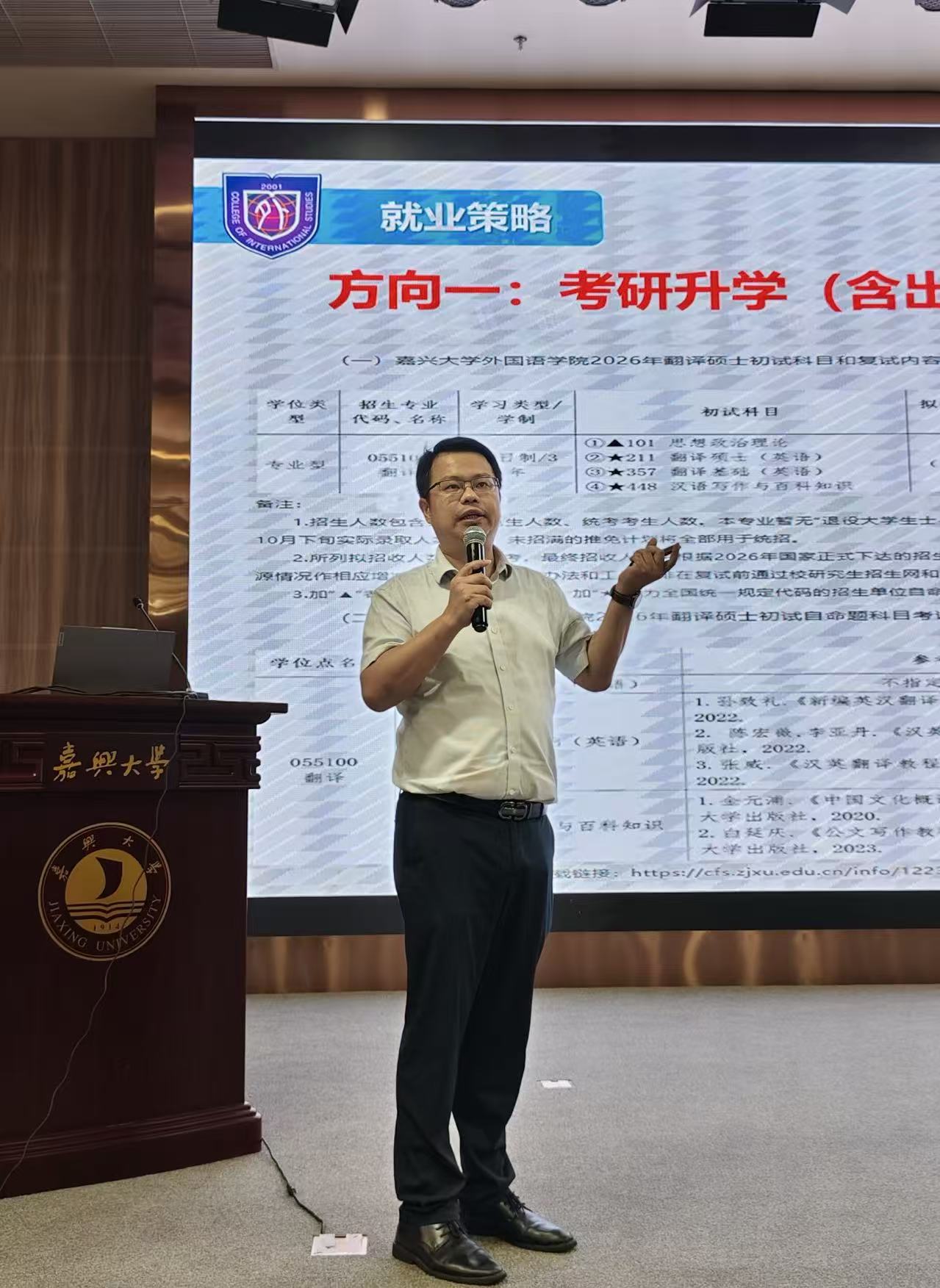 10月15日晚,私房tv 在图书馆一楼报告厅举行2026届毕业生就业动员会。学术副院长单谊教授应邀为毕业生做“研途有你勇攀高峰”主题报告,全体2026届毕业生参会。会议由学院党委副书记张啸峰主持。