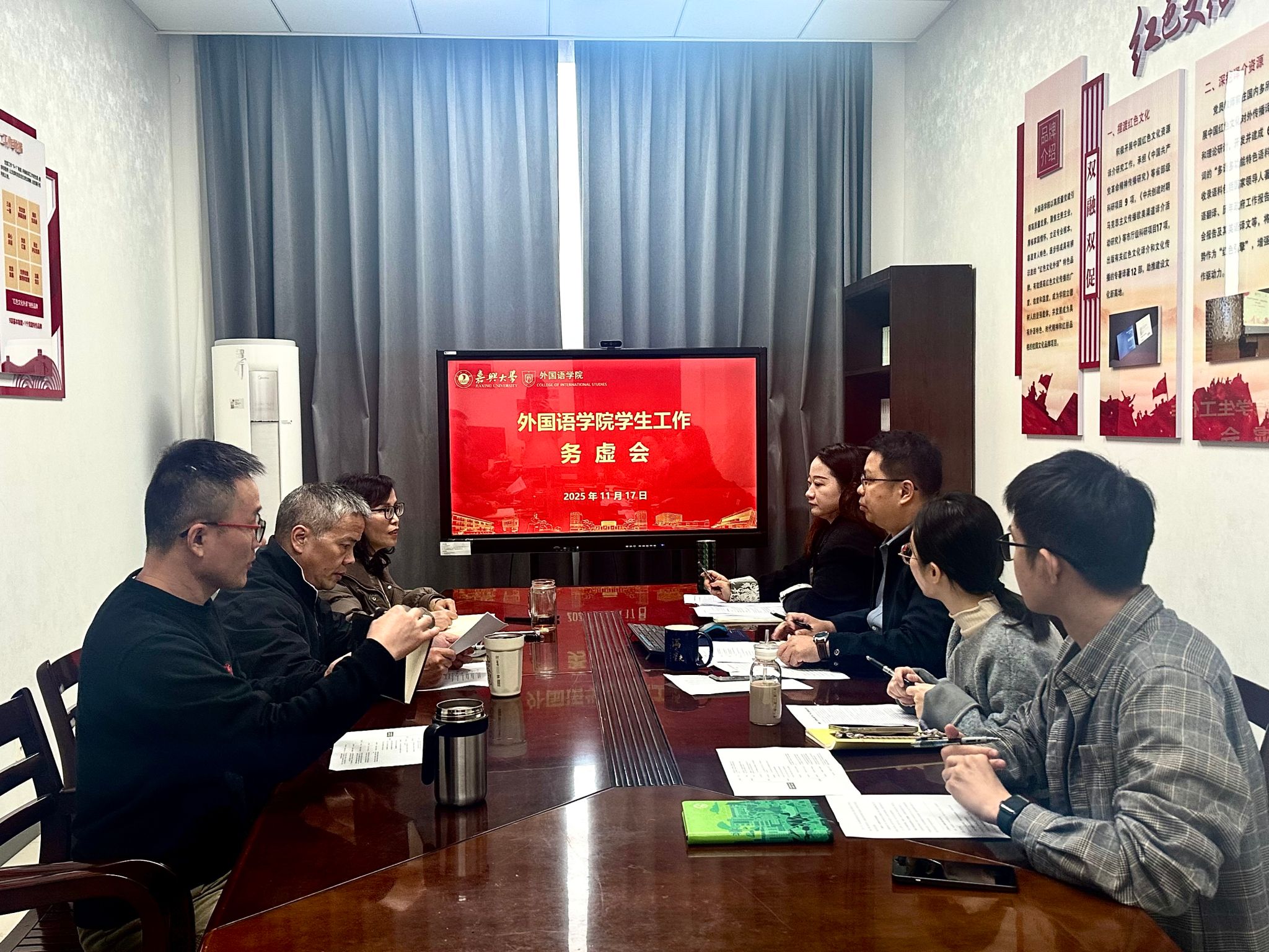 深入实施新时代立德树人工程,提升私房tv 学生思政教育质效,11月17日,私房tv 在兴德南楼521会议室召开学生工作务虚会,围绕“红译外院”思政育人体系的系统构建展开深入研讨。学院院长唐艳芳、党委书记刘巧芝、学术副院长单谊出席会议,全体辅导员参会。会议由学院党委副书记张啸峰主持。
