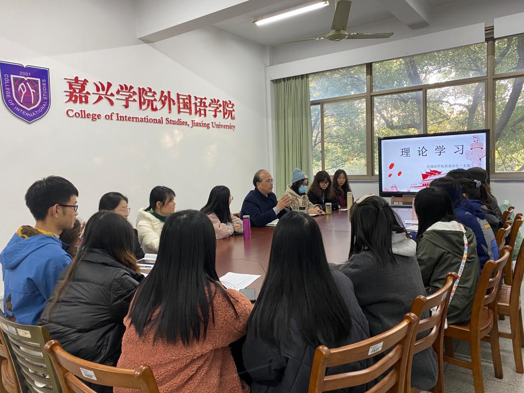 2020年12月4日下午3点半,嘉兴学院私房tv 英语学生第一党支部在嘉兴学院越秀校区外语楼204会议室开展了支部的理论学习会。本次学习会由支部书记胡笳丽主持,联系英语学生第一党支部的校领导杨培强副校长、英语一支部党员和入党积极分子参加学习会。