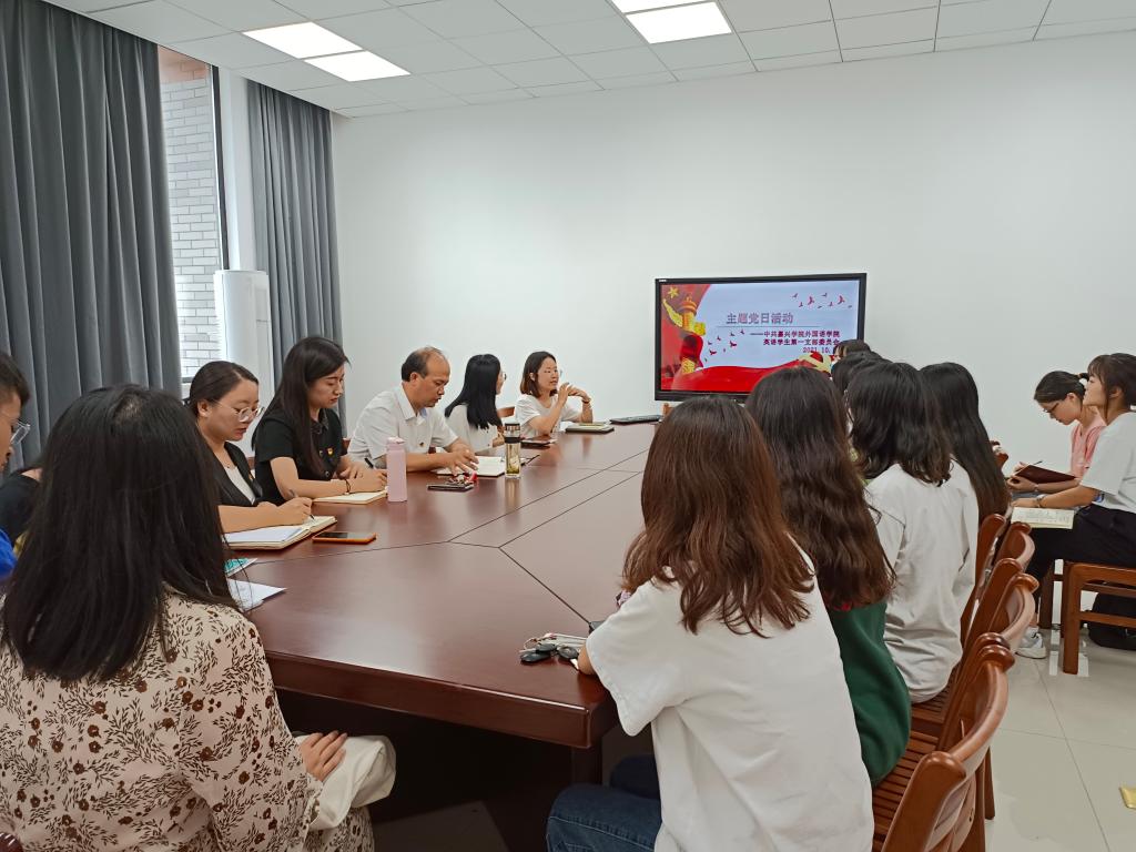 为扎实推进党史学习教育,进一步提升学生党员的党性修养,引导学生党员担负起时代赋予的责任和使命,私房tv 英语学生第一党支部于10月14日下午在兴德楼513开展了主题党日活动。校党委委员、副校长杨培强,学院党委书记周钰、副书记朱莹及支部全体党员同志出席了本次活动。本次活动由支部书记胡笳丽主持。