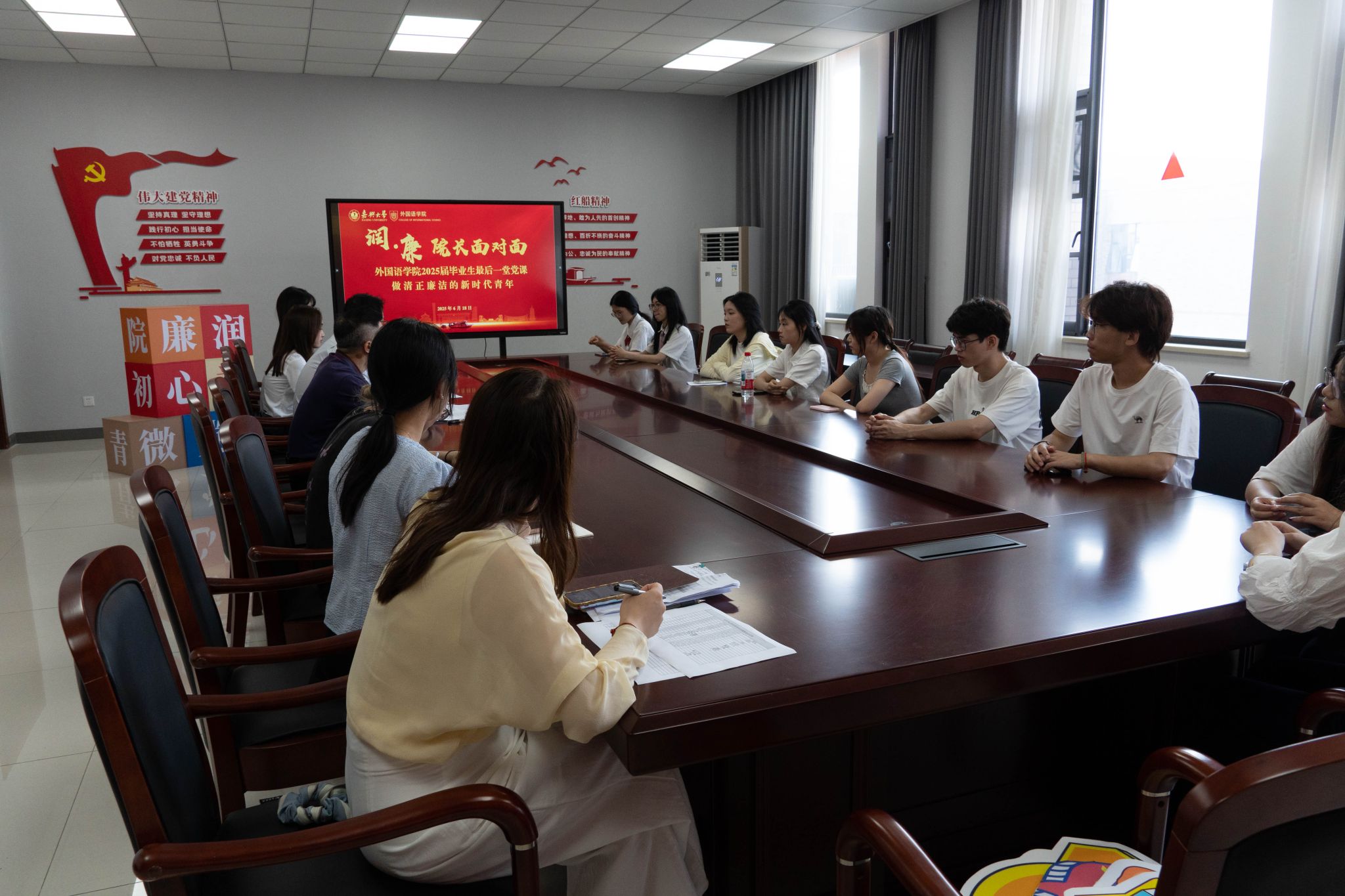 6月18日下午,私房tv 院长唐艳芳教授应邀为学院2025届毕业生党员讲授主题为“做清正廉洁的新时代青年”为主题的廉洁从业教育的大学“最后一堂党课”。学院党委副书记张啸峰主持活动。