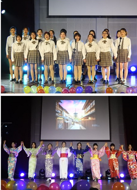 此次外语风采系列展示分为三个篇章。篇章一,徐欢同学的日语朗诵《風景開眼》(ふうけいかいがん)。外院表演队演绎莎翁笔下经典爱情故事《罗密欧与朱丽叶》,他们饱含深情的演绎,诠释了他们心中这段美好的爱情故事。私房tv 的老师们带来《外文歌曲串烧》,分别展示了英、日、法、韩歌曲的无穷魅力,充满活力的表演引得台下呼声连连。接下来是两位女生带来歌曲《我要你》,迷人的歌声与月色同样撩人。歌舞同行,在动人的歌声之后,是优雅的舞蹈同行。魏诗浓同学带来的中国传统舞蹈《丽人行》,让我们近距离的感受中国传统文化之美。七位同学带来日剧play《一公升的眼泪》,教会我们即使人生充满坎坷,也要热爱生活。篇章二,日语162班全体同学带来的日语版《那些年》,我们可能会在四年的大学生活中错过许多,但希望没有错过彼此。之后,金航婷同学为我们展示她的职规作品《红船先锋行—我的“红色”双语讲解之路》,优秀的学姐是我们学习的榜样。日语181班带来的日语趣味歌舞表演《Tokyo Bon》,通过唱歌、跳舞来享受学习,是一种很好的学习方法。日语外教老师们为我们带来《それが大事》,语言虽不同,但同样传达出对生活的热爱与激情,这就是歌曲的魅力!篇章三,五位外院学子带来乐队表演《Radioactive》&《Creep》生活虽充满挫折与坎坷,但仍保持积极的态度,现场洋溢着青春气息。萧楚炘同学的英语朗诵《Crossing the river by feeling for the stones》,让我们对流利纯正的英语口语有了更直面的了解与赞叹。最后,是最令人期待的模特秀,热烈的气氛将整场晚会推向了最高潮。