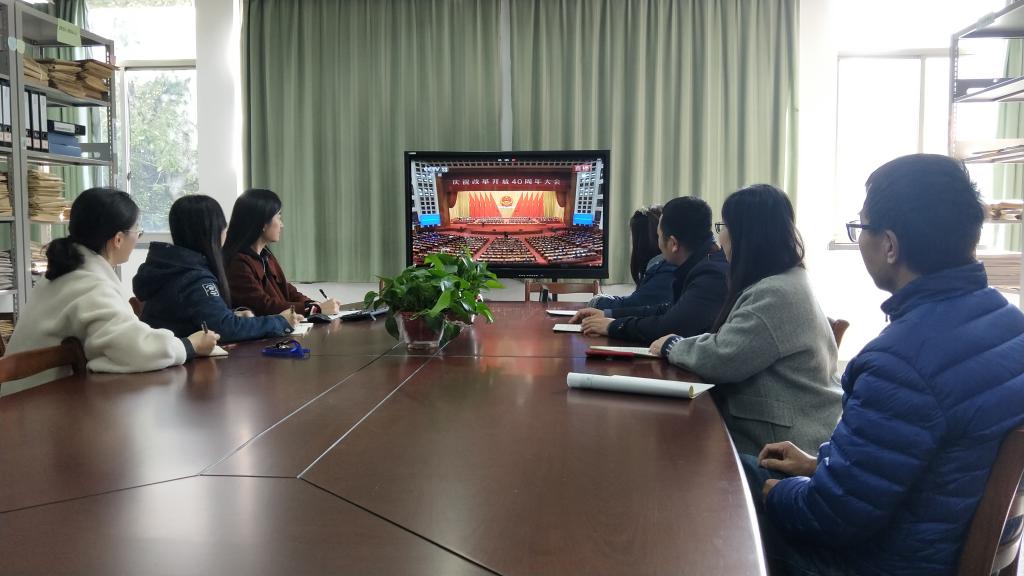 40年风雨同舟,40年披荆斩棘,40年砥砺奋进,40年春风化雨。12月18日上午10点,庆祝改革开放40周年大会在人民大会堂隆重举行。会上,习近平总书记回顾了改革开放40年的光辉历程,深刻总结了改革开放的宝贵经验,表彰了改革开放中的杰出贡献人员。私房tv 教工第三支部响应院党委的号召,组织全院教职工通过各种形式收听收看了大会盛况。