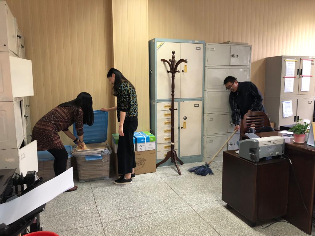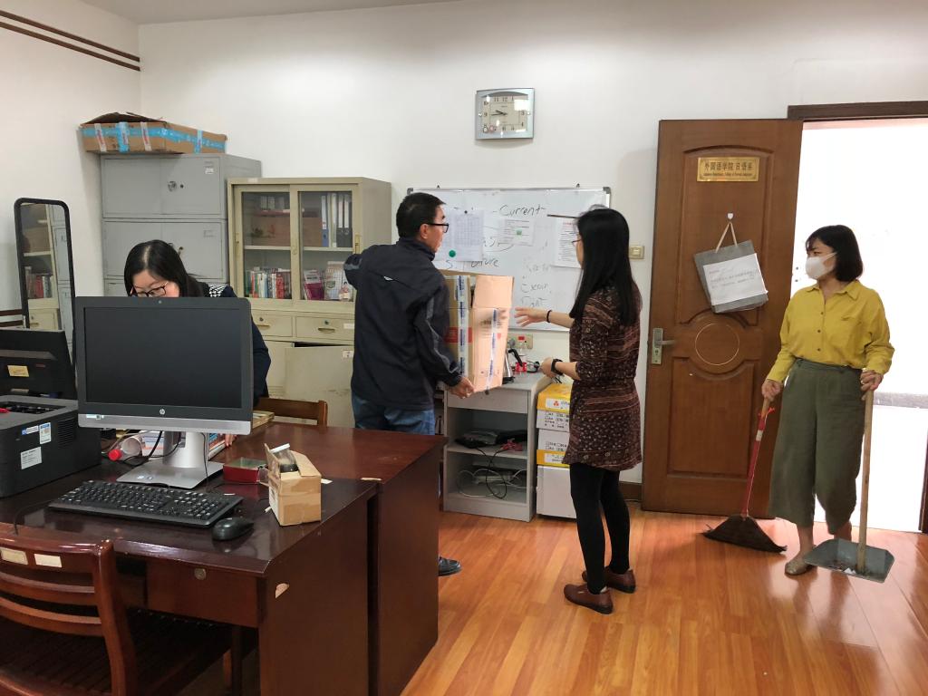 2018年10月17日,外院第三教工党支部为迎校庆和“审核性评估”开展了一次“大扫除”志愿活动:打扫日语系办公室、外院教务办、学工办、外院院办的地面和桌面卫生,整理物品摆放,布置一些绿化植物。