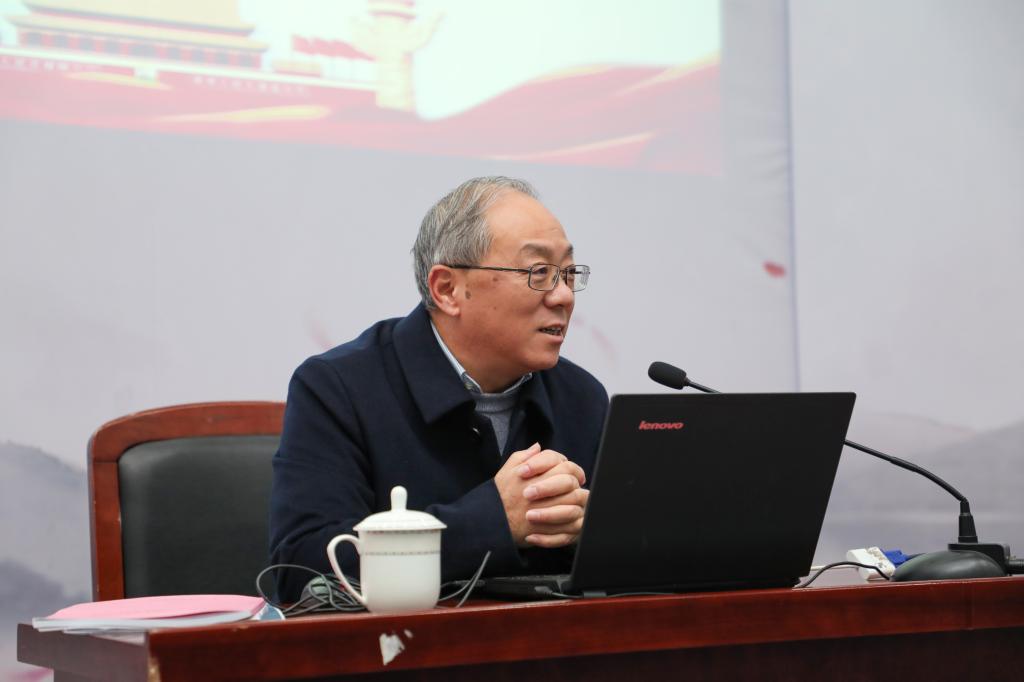 为深入学习宣传贯彻党的十九届四中全会精神,进一步深化“不忘初心、牢记使命”主题教育,12月26日,校党委十九届四中全会宣讲团成员、副校长费建文为私房tv 和机电工程学院全体教职工作党的十九届四中全会精神宣讲报告。报告会由私房tv 党委书记陶丹玉主持。