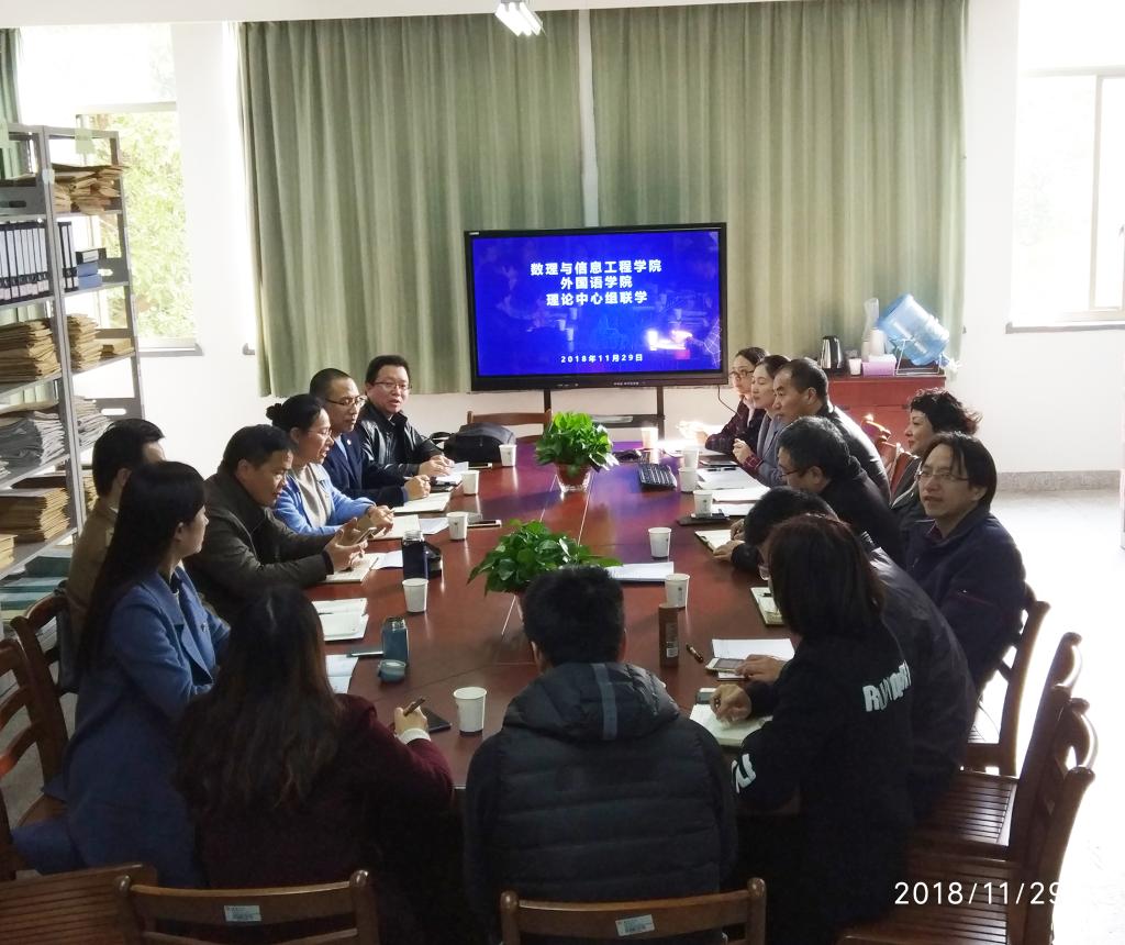 11月29日下午,私房tv 与数理与信息工程学院党委理论中心组开展联合学习活动。此次会议主题是“学习贯彻市委八届四次全会精神,助推学校‘三步走’发展战略”。会议由私房tv 党委书记陶丹玉主持,两个单位全体理论学习中心组成员参加。