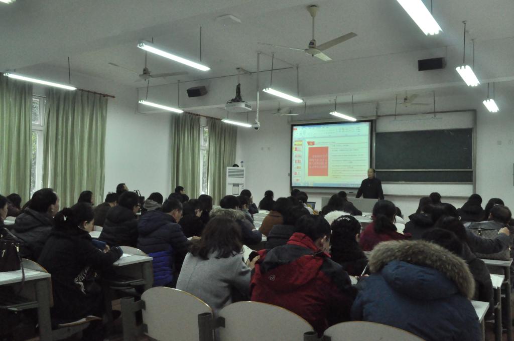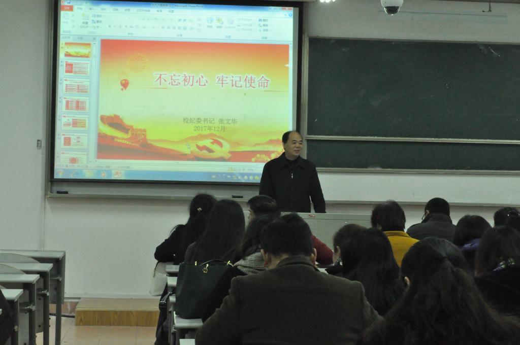 12月14日下午,私房tv 在教一139举行政治理论学习会,校纪委书记张文华应邀为学院全体教师作党的十九大报告宣讲。宣讲会由私房tv 党委书记陶丹玉主持,私房tv 全体教师参加宣讲会。