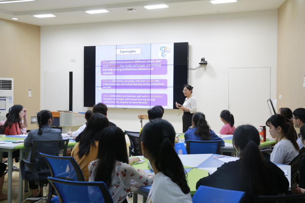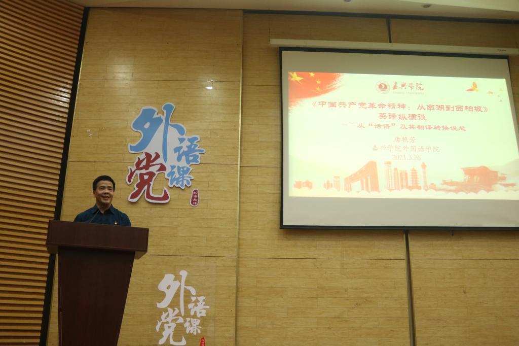 党支部紧紧围绕党建工作特色化建设,促进基层活力激发,推动党建和业务工作相结合,形成党建与业务工作双融双促的效果,助推建设文化新高地,力促学生成长成才。支部党员教师积极尝试把嘉兴红色资源“活化”为英语专业的课程思政资源,在嘉兴红色旅游景点、场馆沉浸式的体验中教授英语翻译课程;赴全国高校开展中国红色文化译介专题讲座,用外语讲中国红色故事;积极开展红船精神、苏区精神、井冈山精神、长征精神、延安精神、西柏坡精神等中国红色文化资源的译介工作,通过国内党史党建研究领域和外语翻译领域的跨学科协作,致力打造“红色文化外译”品牌,多途径推动嘉兴红色文化多语种、多媒体、高效率的国际化传播,传承红色基因,赓续红色血脉,让嘉兴红色文化走向世界;指导学生开发了“红船精神国际交流助手”APP,译介了大量红船精神相关的党史资料,让学生在提高翻译技能的同时潜移默化地受到了红色文化的熏陶;组织《习近平谈治国理政》(英文版)读书分享研讨会暨支部主题党日活动,党员教师通过引导广大同学用英语研读以《习近平谈治国理政》为代表的马克思主义理论和中国特色社会主义理论成果,提升大学生的专业素养和文化内涵。支部党员开展的红色文化译介活动多次被人民日报客户端、中国教育在线、《浙江教育报》、新浪网等省级及以上新闻媒体宣传报道。