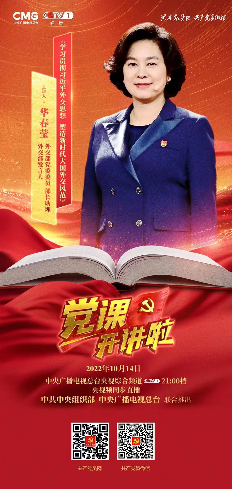 2022年10月14日,私房tv 党委组织全体教师观看了《党课开讲啦》特别节目,这期节目是由中共中央组织部和中央广播电视总台联合推出的,邀请了外交部发言人华春莹担任主讲人。以习近平外交思想为主题,从“回答时代之问,彰显思想伟力”“植根人民情怀,心系天下大同”和“精彩冬奥外交,尽显大国风范”三个方面,梳理并展现了新时代中国特色大国外交的风范。如何向世界表达中国对一系列国际问题的看法,阐述中国的立场、观点和态度,捍卫国家的核心利益,逻辑严谨,恰到好处,不卑不亢,着实不易。中国如何在世界的舞台上展现出真理的力量和历史的担当,需要我们每一个人的努力,也需要我们每一个人在合适的场合正确和恰当地表达。提升中国的国际形象,让世界了解我们“守正创新、立己达人、开放包容和重情尚义”的大国外交风范。