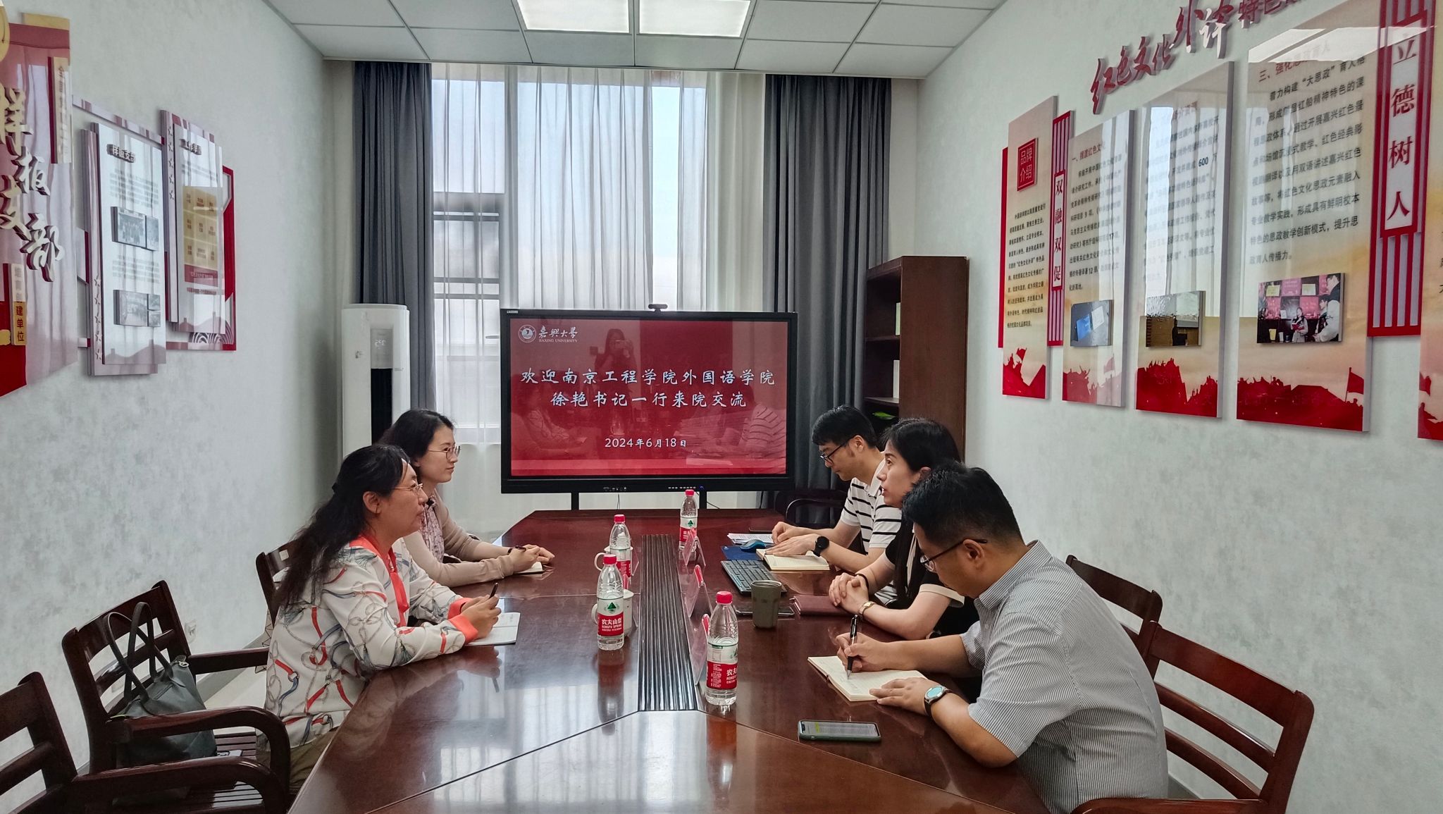 6月18日下午,南京工程学院私房tv 党总支书记徐艳、支部书记何慧文一行来学院交流党建工作。私房tv 党委书记周钰、党委副书记张啸峰以及第二党支部委员鲁俊丰参加交流会。