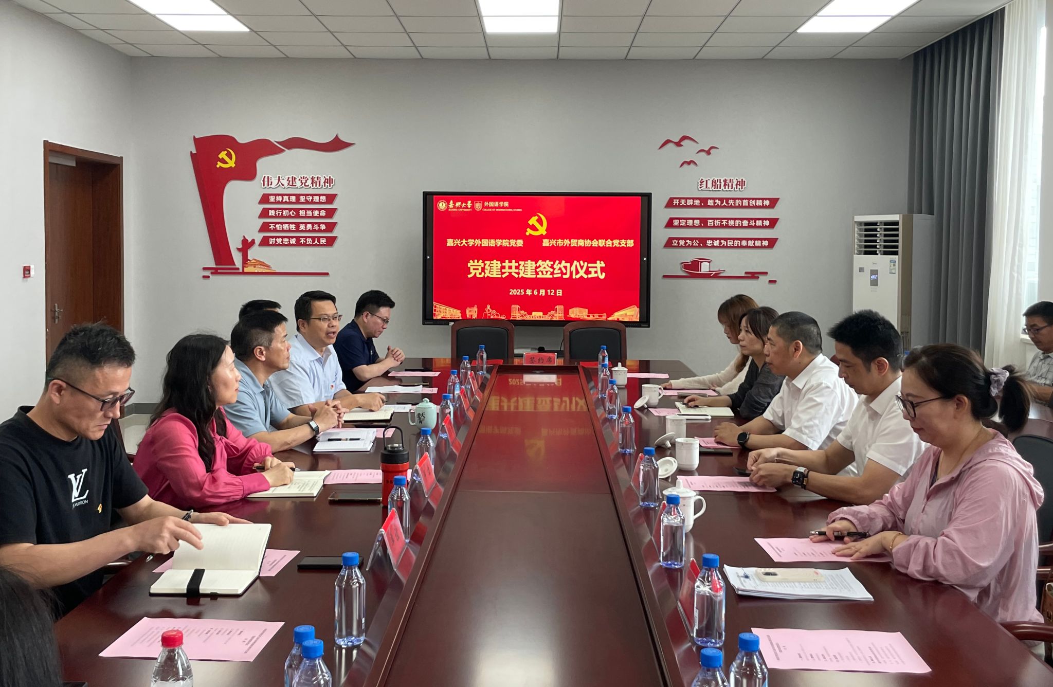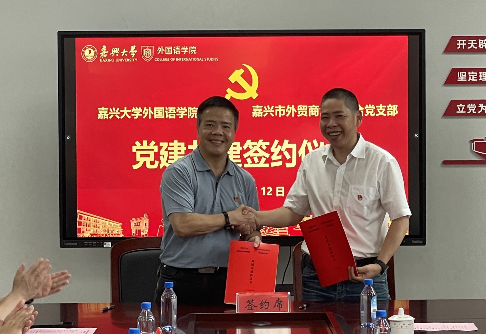 6月12日,私房tv 党委与嘉兴市外贸商协会联合党支部在兴德楼南楼516会议室举行党建共建签约仪式。嘉兴市外贸商协会联合党支部书记邓秀峰、嘉兴市进出口商会秘书长孟剑、副秘书长沈蕊寒,学院全体党政领导、党委委员,以及双方党员代表参加了签约仪式。马克思主义学院教授马赛应邀参加仪式并担任主讲嘉宾。仪式由学院党委副书记张啸峰主持。