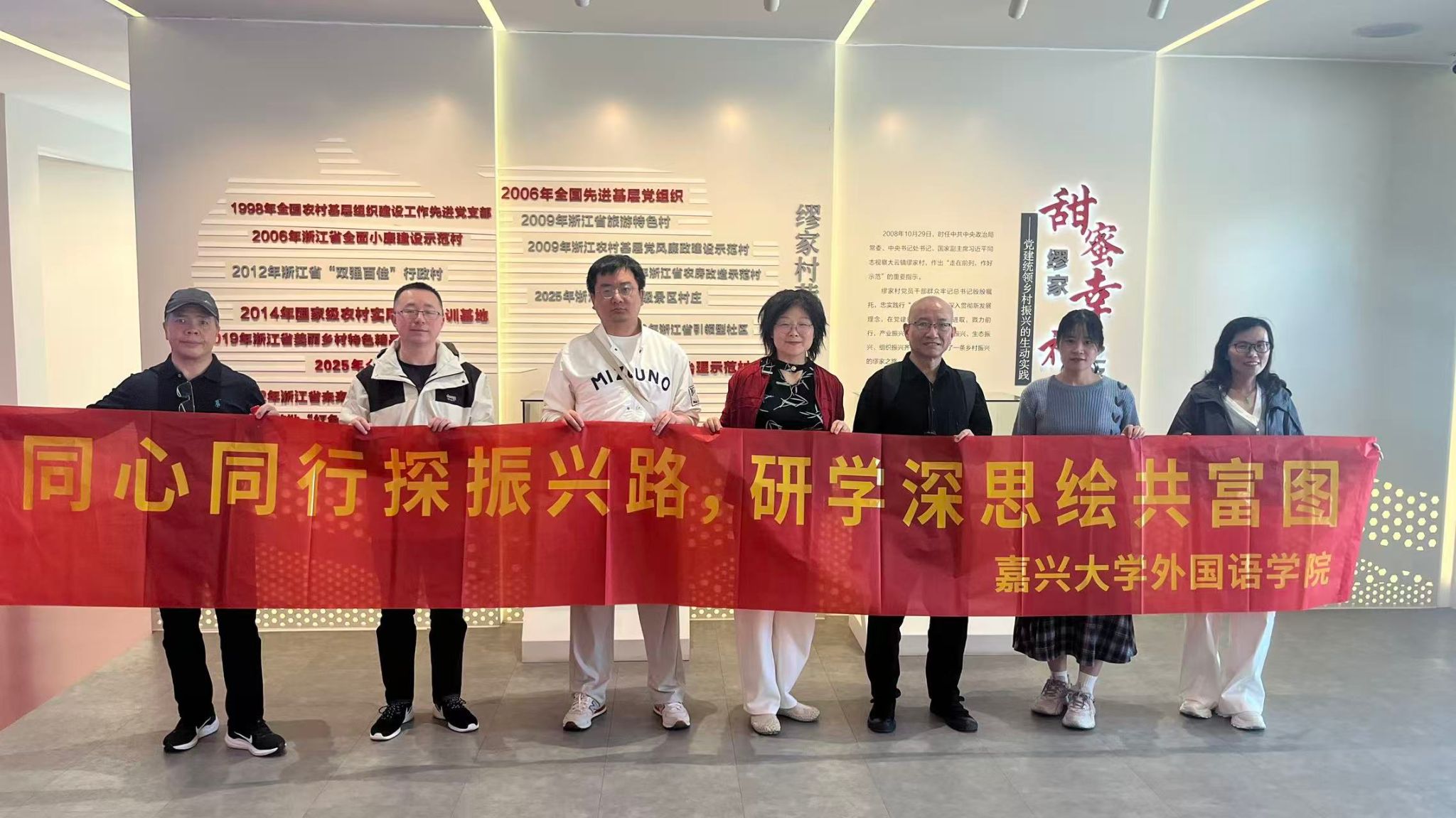 4月26日,私房tv 党委组织党外教师代表赴全国先进基层党组织和“千万工程”的生动实践地——嘉善县大云镇缪家村,开展“同心同行探振兴路 研学深思绘共富图”主题调研活动,进一步凝聚党外知识分子服务地方经济社会发展的共识与力量。