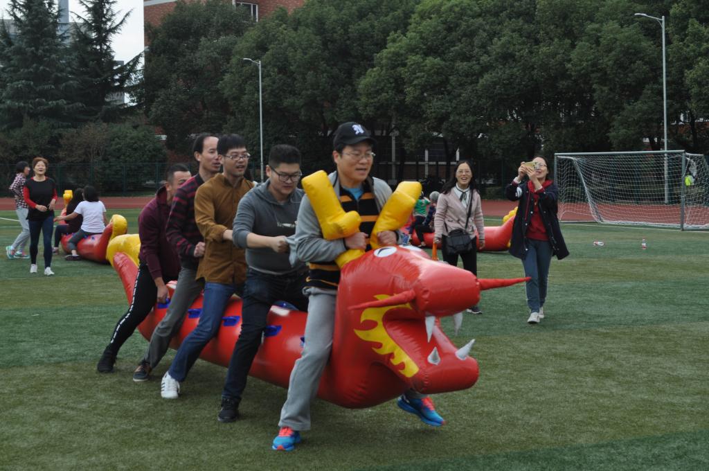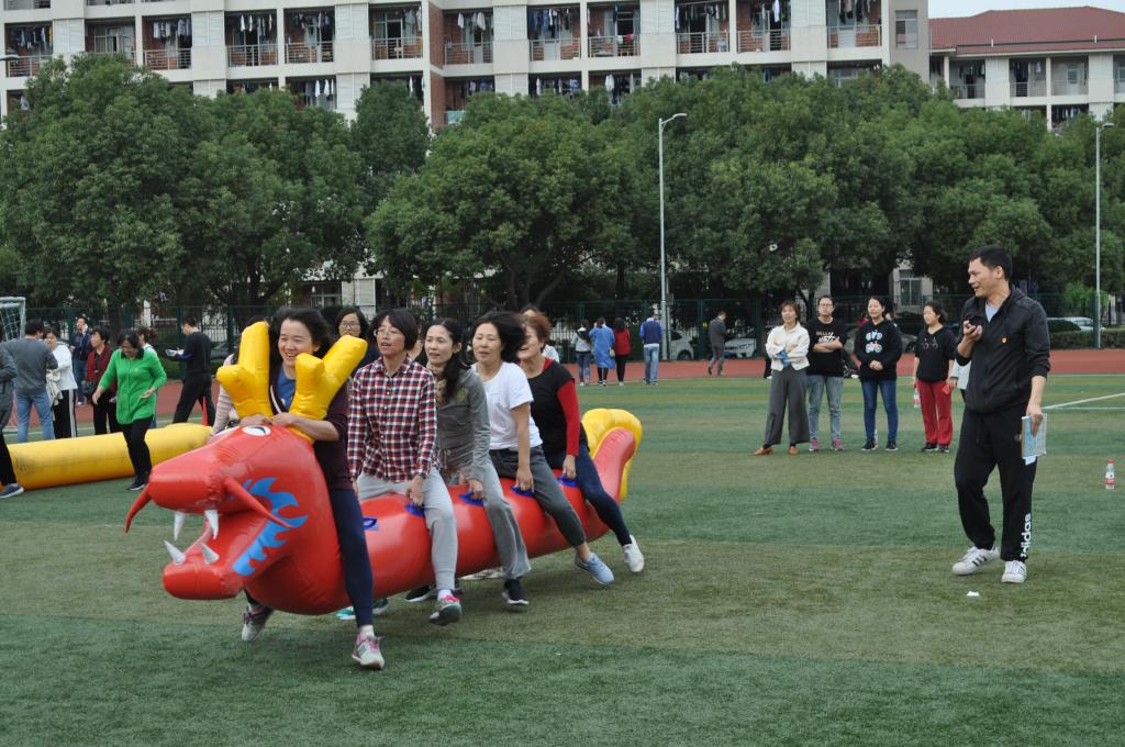 在紧锣密鼓的迎评工作中,我们迎来了嘉兴学院第十八届体育运动会。“我运动,我快乐!”暑假修葺一新的操场上,又飞扬起了全校教职工运动员们的欢声笑语。周五下午梁林操场上,陆陆续续出现了我们私房tv 各位老师的身影。王淞化老师和周振行老师早已站在主席台前,聚精会神的研究着“长风破浪”项目。看到操场上五颜六色可爱的充气毛毛虫,女老师们迫不及待的跨了上去。可上去之后才发现,毛毛虫们的腰足有一棵老樟树那么粗,5个人移动起来不仅需要步调一致,还需要肩部摆动似乎才能前进。经过调整,5位长腿欧巴和长腿欧尼担当起了首战重任。在刁俊春老师和付晓莲老师的龙头带领下,竟然取得了第四的好成绩!