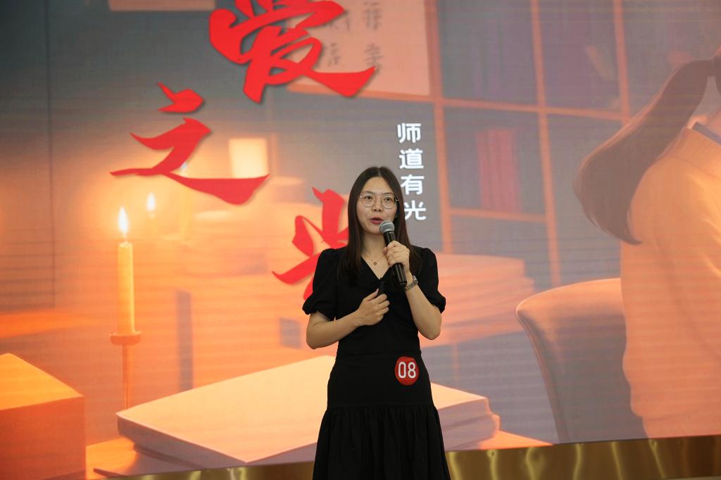 周云老师以《师道有光,爱之光》为题,围绕习近平总书记关于“爱是教育的灵魂,没有爱就没有教育”重要讲话精神展开,从自己的教学经历出发,分享与学生的真实故事。同时,结合获得“人民教育家”荣誉称号的于漪老师和高铭暄教授的感人故事,抒发自己的深刻理解和感悟。通过激情洋溢的演讲,周老师表达了对教育事业的满腔热爱,深情诠释了普通教师的平凡和伟大,也生动展示其爱岗敬业、强国有我的家国情怀。