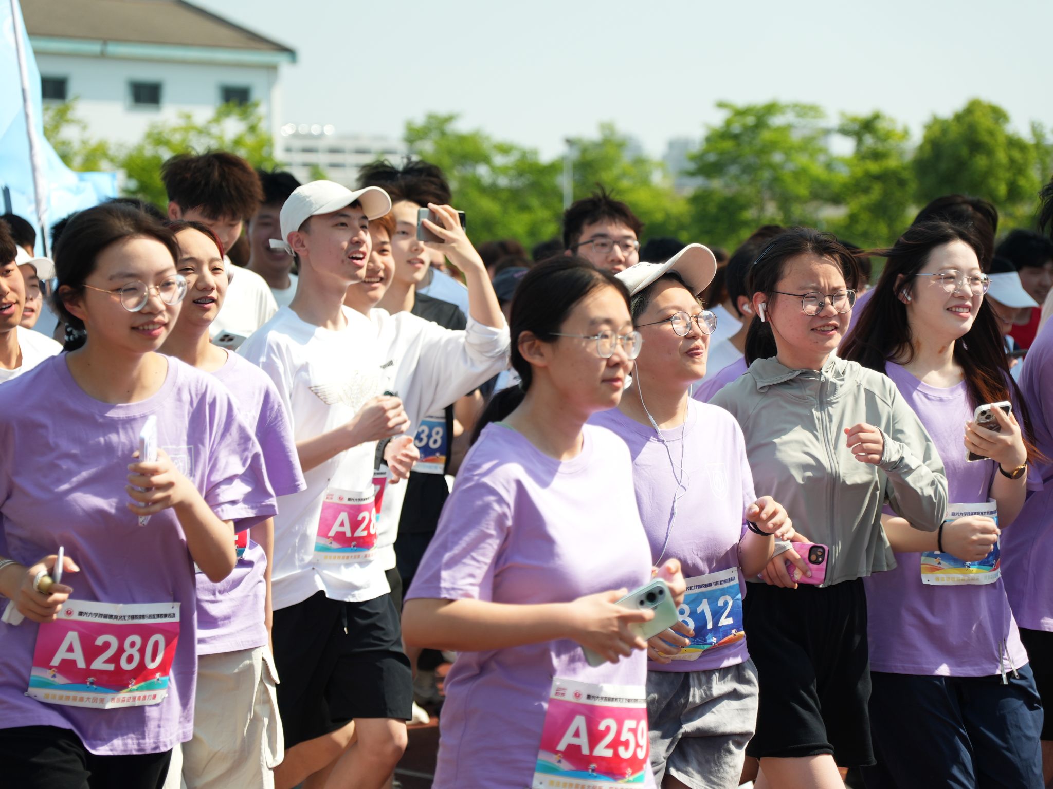 5月18日上午8点半,在领队唐艳芳院长的带领下,私房tv 教师代表队和学生代表队早早来到田径场为马拉松做准备。随着一声令下,师生们如同钱塘江潮水般冲出了起跑线。烈日炎炎,丝毫没有影响师生的热情,久违的酣畅淋漓让校园充满了活力;赛程漫漫,师生们依旧面带微笑、勇往直前。