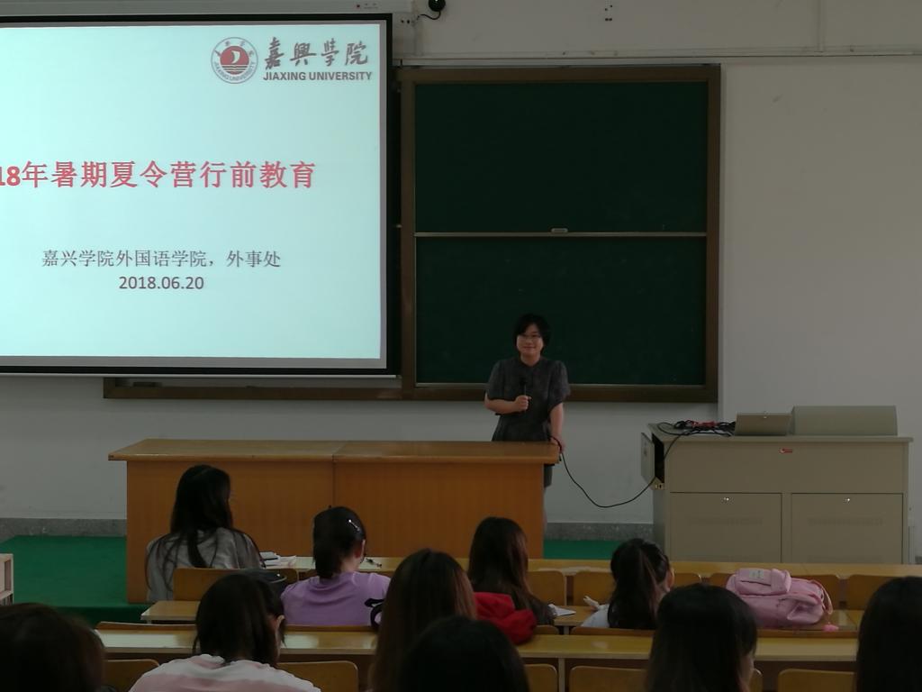 嘉兴学院暑期赴日夏令营活动,迄今举办了两次,共74名学生参加,今年是第三次,有来自私房tv 、南湖学院人文系日语教研室、平湖校区应用技术学院日语系以及其他学院各专业的学生共39名同学参加。鉴于此,为了保证此次活动顺利实施,举办行前教育十分必要。一个月后,39名同学将赴日实习一个月,我们真诚希望嘉兴学院第三次暑期赴日本东京夏令营活动的同学们收获满满,安全归来。