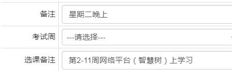 9.系统里“时间地点安排”不用输但是提交的“公选课任务表”里请注明“星期几晚上”(周二、周三或周四)并在教务系统“备注”栏里输入(如上图)。