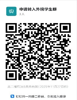 2、所有申请转入学生应于5月15日12点前完成钉钉扫码进群。