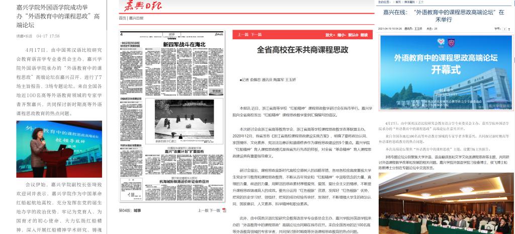 此次高端论坛受到省市级媒体的关注,新浪网、浙江新闻客户端、嘉兴日报、读嘉、嘉兴在线、嘉兴学院报、嘉兴学院微信公众号等多家媒体对此次高端论坛进行了报道。高端论坛的传播力、影响力进一步提升。