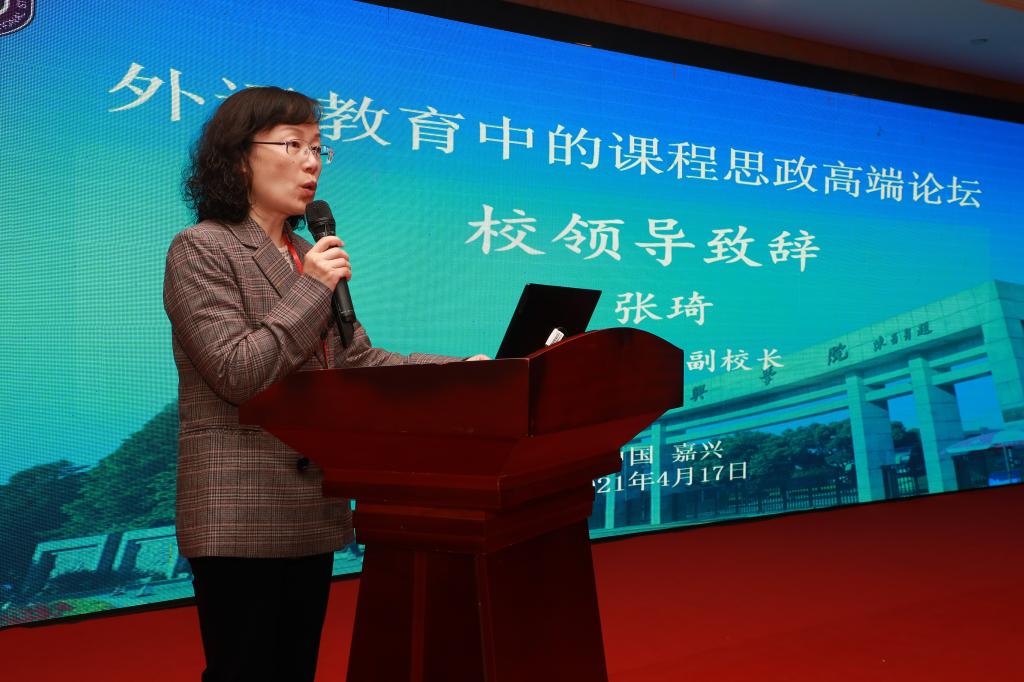 张琦副校长在致辞中指出,嘉兴学院作为中国革命红船起航地高校,充分发挥在党的诞生地办学的政治优势,充分挖掘独特的政治资源,持续推进以红船精神学术研究支撑课程思政资源建设、以教学研究带动课程思政模式创新,全面提升教师思政育人能力,落实立德树人根本任务,大力实施课程思政提升工程,着力构建全员、全程、全方位育人大格局,已初步形成符合人才成长规律、体现时代要求、彰显红船精神特色的课程思政体系。她希望通过本次高端论坛,凝聚发展共识、汇聚创新力量,共享外语课程思政建设成果,共同探索外语教育高质量创新发展之路,共谋百年变局下外语育人新格局,培养政治素质高、专业功底强、国际视野宽,具有浓厚家国情怀和时代创新精神的高素质国际化人才。