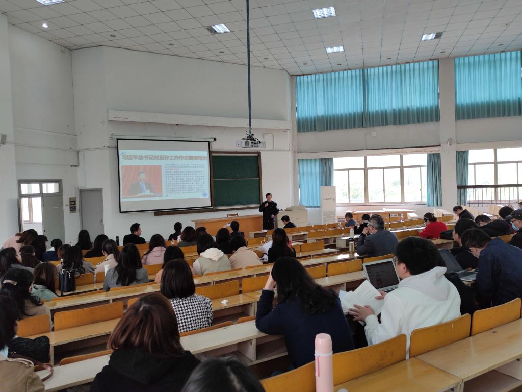 4月15日下午,私房tv 邀请嘉兴市南湖区新兴街道派出所计福荣警官在外语楼310做反诈骗专题培训。学院全体教师参加培训会,培训会由党委书记周钰主持。