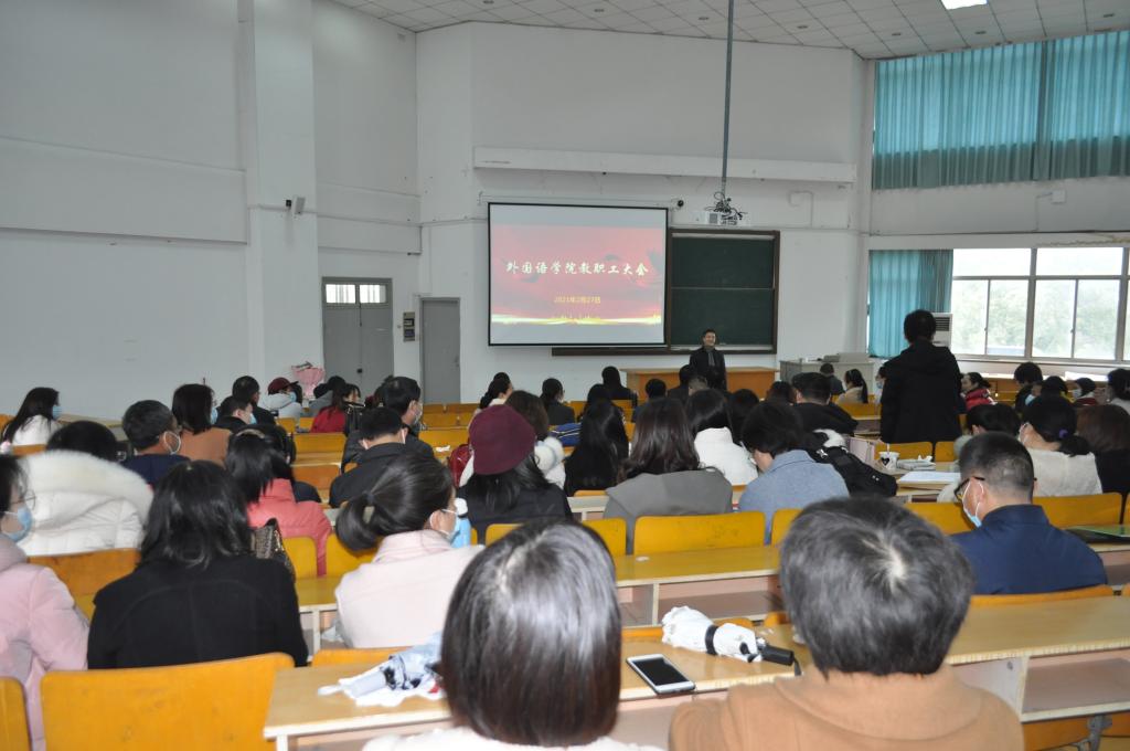 2月27日上午,私房tv 在外语楼310召开2021年第一次全体教职工大会,谋划部署新学期开学工作。会议由院长唐艳芳主持,学院全体教职工参加。