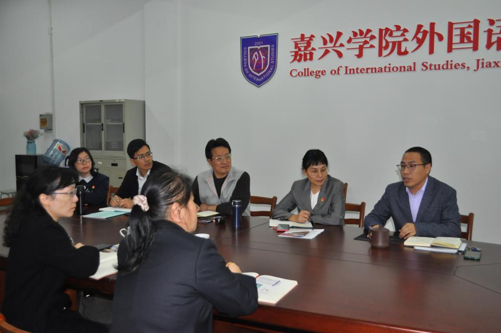 副院长郭永恩汇报了实验室建设情况,指出学院通过努力不断完善语言服务和实训中心建设,提议建设英语文化体验中心、日韩文化体验中心,以方便学生进行更好的文化体验。他还对于如何拓展外教聘用途径、深化国际化教育等方面提出了建议。