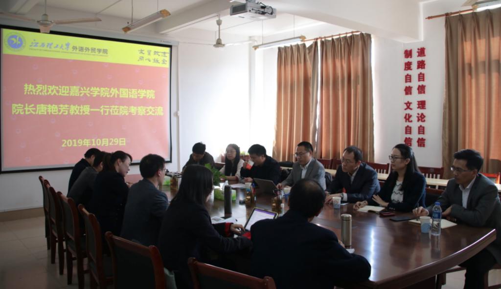 2019年10月29-30日,私房tv 院长唐艳芳、副院长喻锋平携英语系主任刁俊春、日语系主任刘韵超、大外部主任高万全、党政办主任黄洪等一行6人赴江西赣州,对赣南师范大学私房tv 和江西理工大学外语外贸学院进行调研和交流。本次调研旨在考察两校外语专业人才培养情况,并就研究生联合培养等事宜进行洽谈。