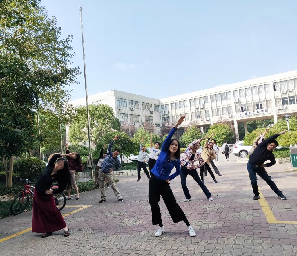 学院对教职工工间操高度重视,通过党政领导带头、行政办公室职员自觉定时到空地学习操练的方式,带动全院教师认真、规范、标准地练习第八套广播体操。学院通过工间操活动的开展,希望教职工们树立“快乐工作、健康生活”的理念,能够经常走出办公室,踊跃参加学校各类文体活动,提升身体素质和幸福指数,以饱满的精神、昂扬的斗志投入到申硕创大工作中去。工间操活动得到了教职工的积极响应和一致好评。通过平常的练习和交流,大家既联络了感情,锻炼了身体,又释放了心理压力。如今,工间操已经成了外语楼前一道亮丽独特的风景。
