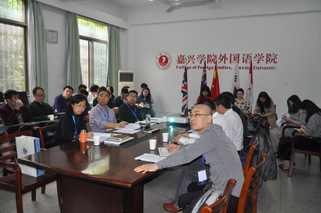 4月23日上午,以浙江树人大学金劲彪教授为组长,浙江师范大学葛永海、洪明教授为专家组成员的嘉兴学院本科专业预评估第三专家组一行3人,对私房tv 、文法学院的英语、日语、法学、汉语言文学、汉语国际教育共五个专业开展校内本科专业预评估工作。评估专家与学院见面会在外语楼101会议室召开,会议由私房tv 副院长喻锋平主持,专业负责人、系部主任、教师代表、教学秘书等出席。、